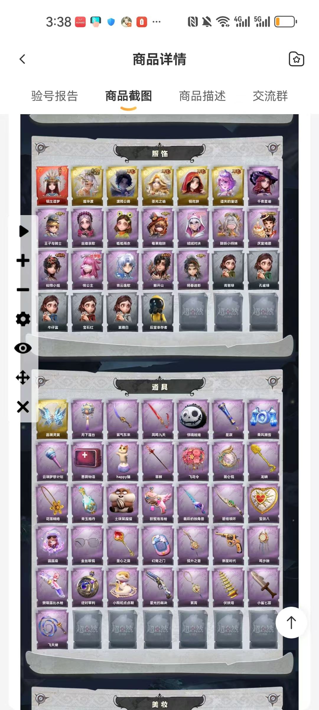 装备描述:巫铃儿-镜生遗梦,逍遥-莲华渡,零-渡鸦公爵,薇薇安-圣光之谕,巫铃儿-镜花辞,小黄-遗失的童话,兰-千夜星谕,阿念-王子与骑士,爱丽丝-丝缕哀歌,小黄-呱呱雨衣,莉莉-莓果陷阱,艾伦-绒绒对决,莉莉-除妖小师妹,阿念-庆宴绮愿,薇薇安-仙锋小姐,莉莉-情公主,零-青云逸歌,零-搬开山,逍遥-绣春逍影;道具:喷气背包-晶澜灵翼,腰包-月下莲台,刺刀-紫气东来,桃木剑-凤鸣九天,腰包-惊魂娃娃,专业手电-星寂,喷气背包-乘风溯雪,专业手电-云端梦想计划,急救包-蔷薇物语,音响-happy猫,长枪-罪棘,额外的背包-飞花令,传送按钮-昆仑镜,铲子-龙鳞,摸金符-花落精绝,黄牛能量饮料-青玉抱丹,急救包-土拨鼠捏捏,电击枪-甜蜜泡泡枪,桃木剑-最后的独角兽,刺刀-碧络琅环,腰包-宝剑八,折扇-露露扇,夜视仪-金丝眼镜,铲子-圣心之泪,传送按钮-幻宠之门,除颤仪-弦外之音,转轮手枪-新星时代,音响-鸣沙鼓,短管猎枪-赞萌露比水枪,传送按钮-逆时审判,长鞭-小狗蛇点点鞭,短管猎枪-星光的裁决,摸金符-紫霄,葫芦-伏妖塔,刺刀-小鲨匕首,长鞭-飞天绫
