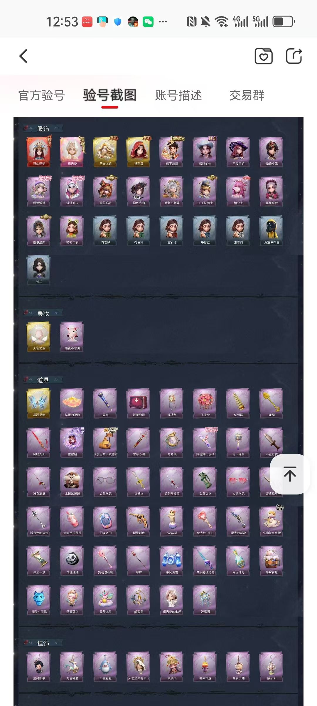 装备描述:【幻梦皮肤】巫铃儿-镜生遗梦 【星耀限定皮肤】小黄-炽天使 【金色皮肤】小黄-炽天使、薇薇安-圣光之谕、巫铃儿-镜花辞 【紫色皮肤】阿念-庆宴绮愿、爱丽丝-耀眼的你、兰-千夜星谕、薇薇安-仙锋小姐、爱丽丝-甜梦派对、艾伦-绒绒对决、莉莉-莓果陷阱、小黄-异色序曲、莉莉-除妖小师妹、阿念-王子与骑士、莉莉-情公主、爱丽丝-丝缕哀歌、逍遥-绣春逍影、小黄-呱呱雨衣 【道具皮肤】喷气背包-晶澜灵翼、腰包-私藏的银河、专业手电-星寂、急救包-蔷薇物语、音响-鸣沙鼓、额外的背包-飞花令、葫芦-伏妖塔、铲子-龙鳞、桃木剑-凤鸣九天、折扇-露露扇、铲子-卡皮巴拉小黄豚铲、急救包-末章心跳、传送按钮-昆仑镜、短管猎枪-赞萌露比水枪、腰包-月下莲台、刺刀-小鲨匕首、桃木剑-绯色遗证、急救包-土拨鼠捏捏、夜视仪-金丝眼镜、摸金符-祝祷词、刺刀-铂刺与红萼、闪光弹-金戈玄铜、夜视仪-心跳眼镜、刺刀-碧络琅环、铲子-撒拉弗的祷告、黄牛能量饮料-珍珠芭乐莓莓、传送按钮-幻宠之门、转轮手枪-新星时代、音响-happy猫、短管猎枪-星光的裁决、长鞭-小狗蛇点点鞭、传送按钮-浮生一梦、腰包-惊魂娃娃、铲子-赞萌波板糖