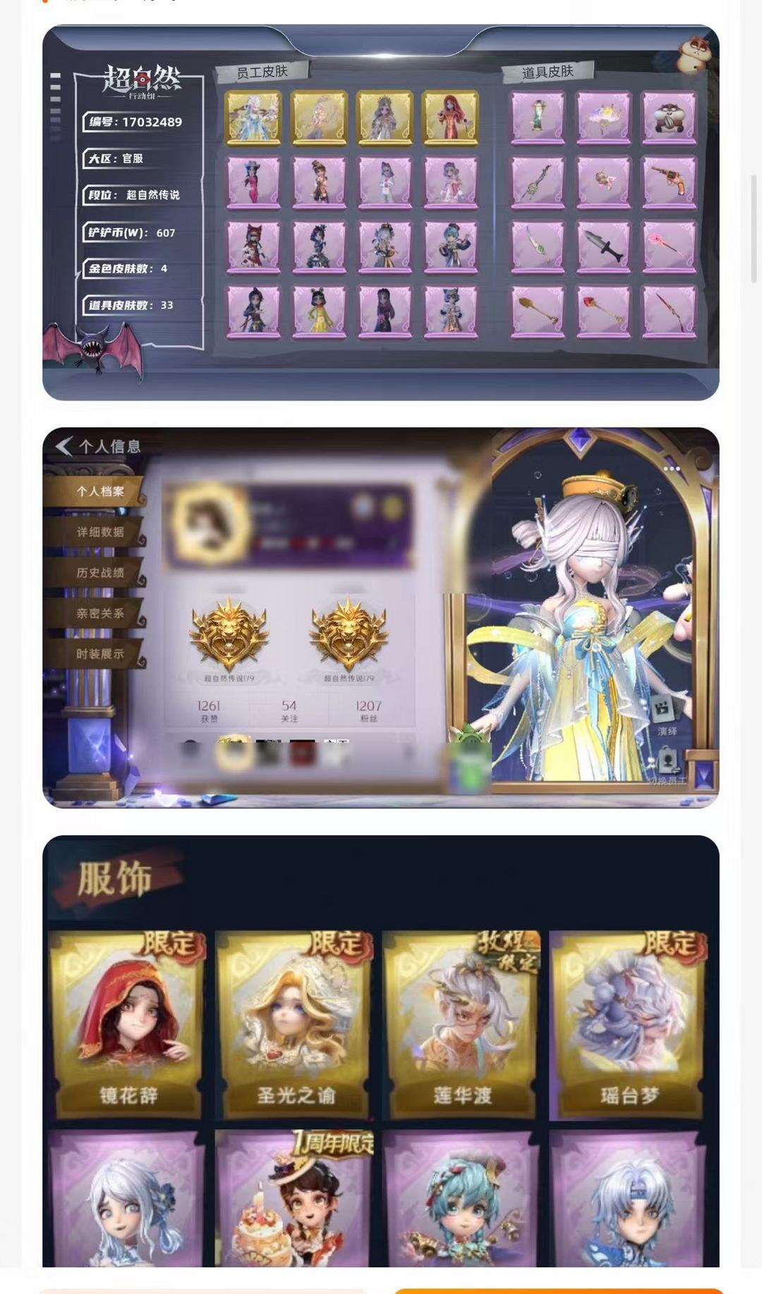 装备描述:段位:超自然传说 员工:逍遥,薇薇安,巫铃儿,莉莉,阿念,艾伦,小黄,零,爱丽丝,爱德华,兰,小满,临云 外观:圣光之谕,镜花辞,丝缕哀歌,霓裳踏雪,青云逸歌,素影瑶光,情公主,嘻嘻头p套,烈焰红唇头套,呆滞头套,炙热烧烤,卑微头套,哈士奇头套,滑稽头套,鳄霸天头套,鱼头怪头套,面具马头套,萨卡班甲鱼头套,咬咬鲨头套,小狗蛇点点头套,蝶恋花,小鲨包包,未竟乐园,天使消失的年代,钗头凤,呱呱雨衣,绣春逍影,绒团小狐狸,迷途僵宝,除妖小师妹,火爆了头套,莲华渡,异色序曲,精致露比头套,惊魂南瓜,莓果陷阱,甜梦派对,绒绒对决,樱桃奶油布丁,太空鲨头套,尘封旧日事,耀眼的你,庆宴绮愿,炽天使的余烬,晚安小熊,瑶台梦,拂云仙,不朽的今夜,牛啤背包,桂冠聆诗
