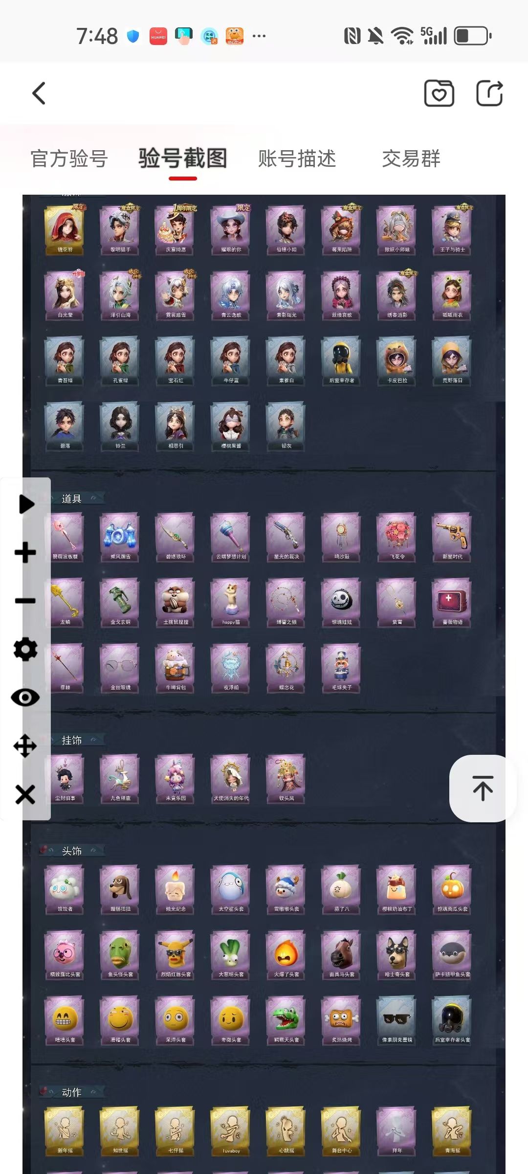 装备描述:【金色皮肤】巫铃儿-镜花辞 【紫色皮肤】艾伦-黎明猎手、阿念-庆宴绮愿、爱丽丝-耀眼的你、薇薇安-仙锋小姐、莉莉-莓果陷阱、莉莉-除妖小师妹、阿念-王子与骑士、薇薇安-白光莹、逍遥-泽引山海、小黄-霓裳踏雪、零-青云逸歌、巫铃儿-素影瑶光、爱丽丝-丝缕哀歌、逍遥-绣春逍影、小黄-呱呱雨衣 【道具皮肤】铲子-赞萌波板糖、喷气背包-乘风溯雪、刺刀-碧络琅环、专业手电-云端梦想计划、短管猎枪-星光的裁决、音响-鸣沙鼓、额外的背包-飞花令、转轮手枪-新星时代、铲子-龙鳞、闪光弹-金戈玄铜、急救包-土拨鼠捏捏、音响-happy猫、长鞭-缚誓之锁、腰包-惊魂娃娃、摸金符-紫霄、急救包-蔷薇物语、夜视仪-金丝眼镜、背饰-夜浮船、背饰-蝶恋花、背饰-毛球夹子 【头饰】饺饺者、腊肠扭扭、太空鲨头套、雪墩墩头套、蒜了八、樱桃奶油布丁、惊魂南瓜头套、精致露比头套、鱼头怪头套、烈焰红唇头套、大葱明头套、火爆了头套、面具马头套、哈士奇头套、萨卡班甲鱼头套、嘻嘻头套、滑稽头套、呆滞头套、卑微头套、鳄霸天头套、炙热烧烤、像素朋克墨镜、后室幸存者头套