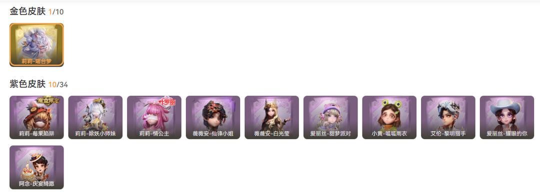【小念】1金10紫20道具莉莉全皮粉车瑶台梦除妖小师妹情公主莓果陷阱黎明猎手仙锋小姐罪棘花火月光奏鸣