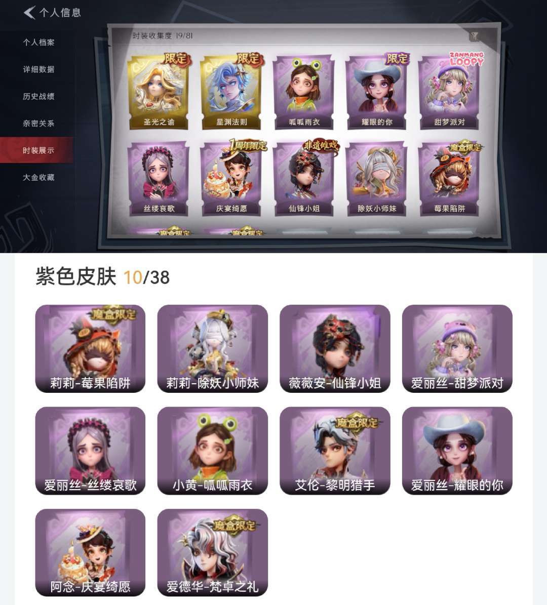 2金13紫☔星渊法则☔圣光之谕☔甜梦派对☔梵卓之礼☔极品露露扇☔赴此良宵☔小金铲☔happy猫