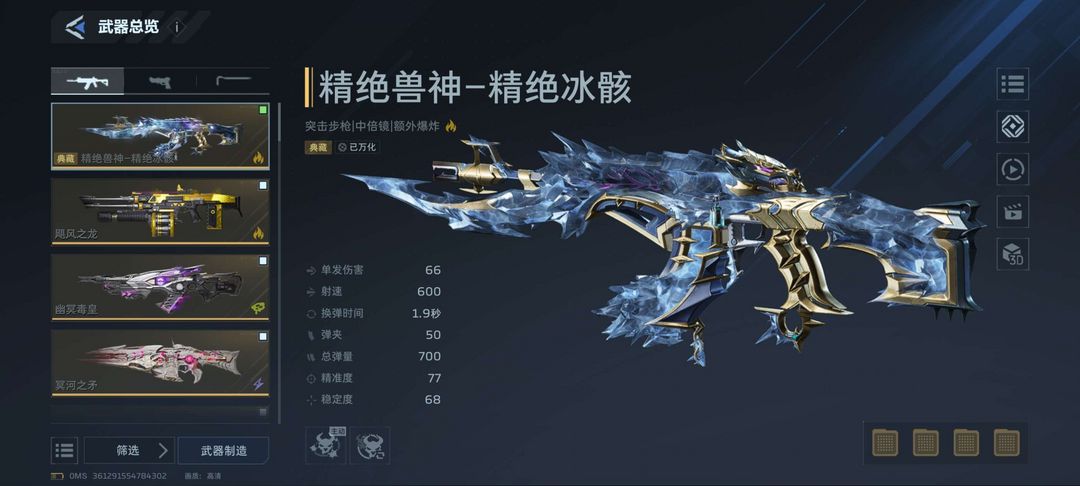 猎场毕业 T0枪械全部有角色有金战云无尽雷霆塔防皮肤兽神皮肤金刀全毕业。