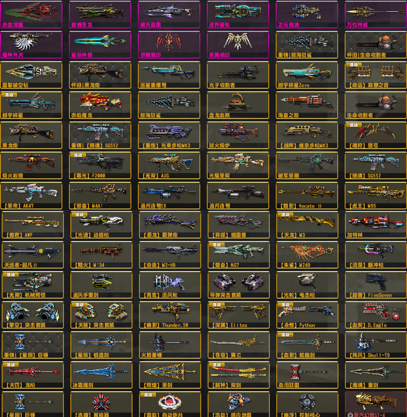 熊●马神赤血龙骧四件套●双黯4特典狙机枪黯火黯影●兔龙神威次元双雷●光束维京套闪电野牛重铸怀旧套去雾
