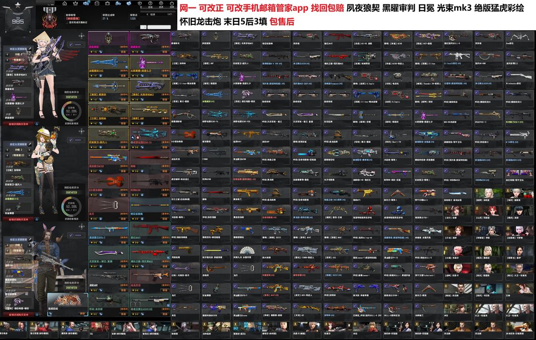 夙夜狼契】光束3】迷彩awp】日冕】猛虎纹身】黑耀】重锤】冰霜魔剑】画梅】死神】龙爪】锯刃大刀】星红