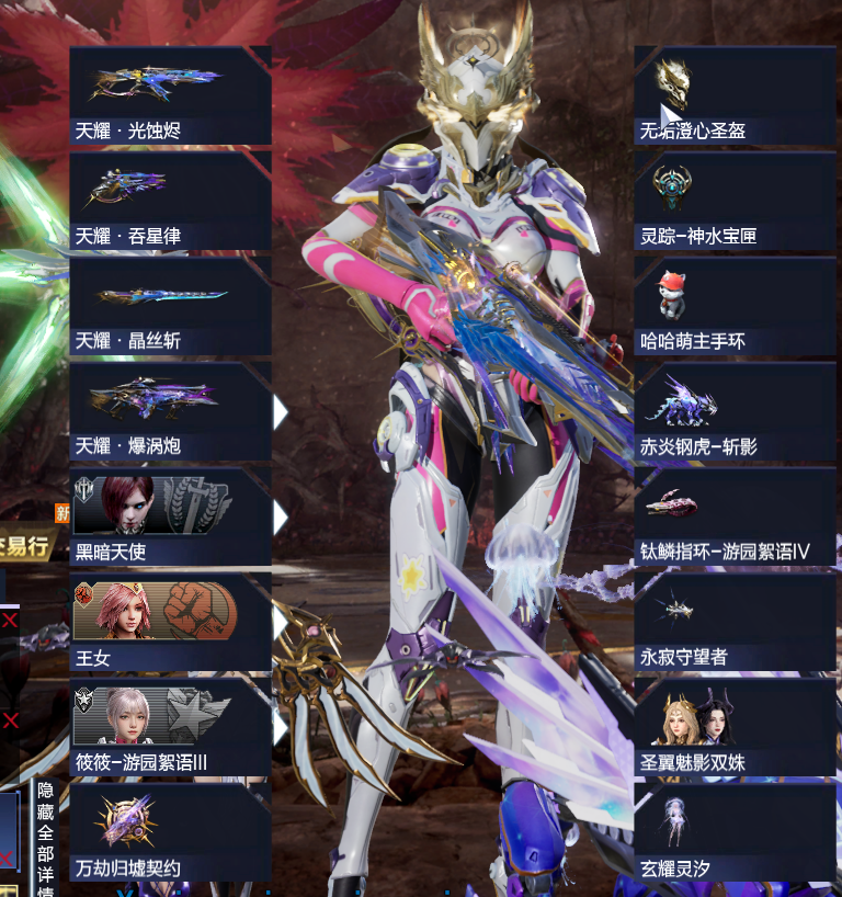 装备描述:白板天耀+玄耀灵汐 英雄焚霄+英雄剑风,塔防双伴生灵,猎场伴生灵圣翼魅影双姝