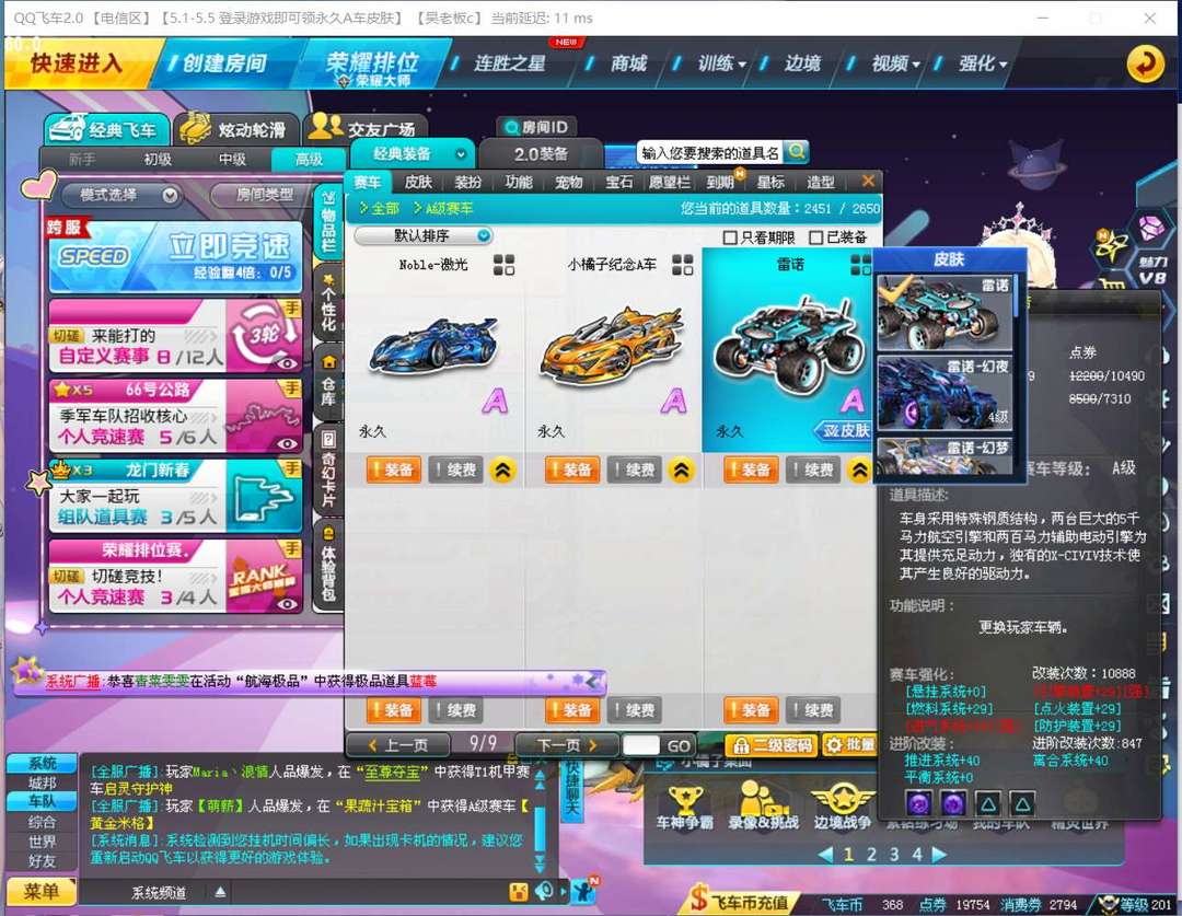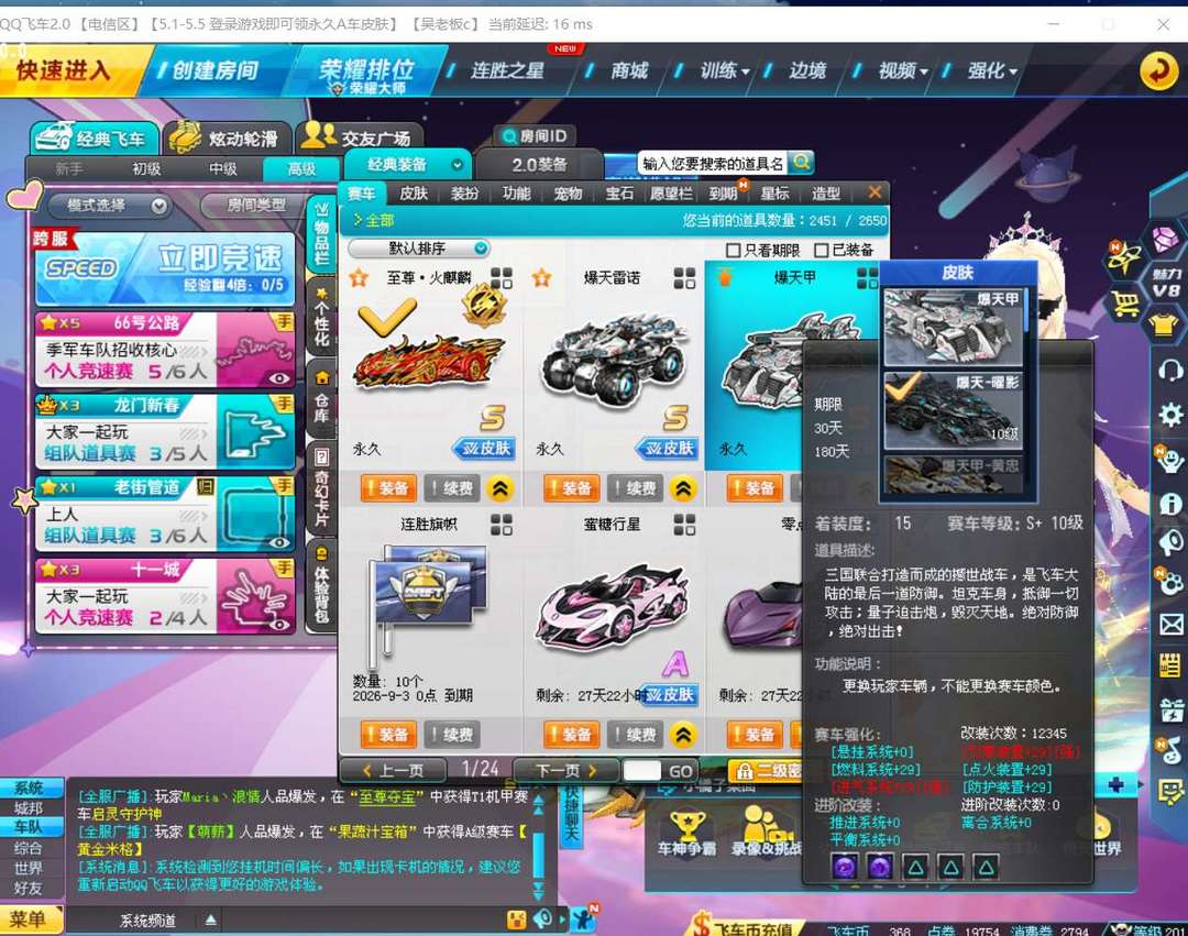 游戏区服:QQ飞车-电信-电信