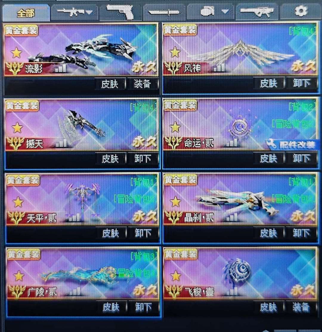 装备描述:最新彩金刀流影,其他热门彩金晶刹,天平,广陵,飞梭,命运,撼天,塞壬,暗水晶,风神,裁决等等都