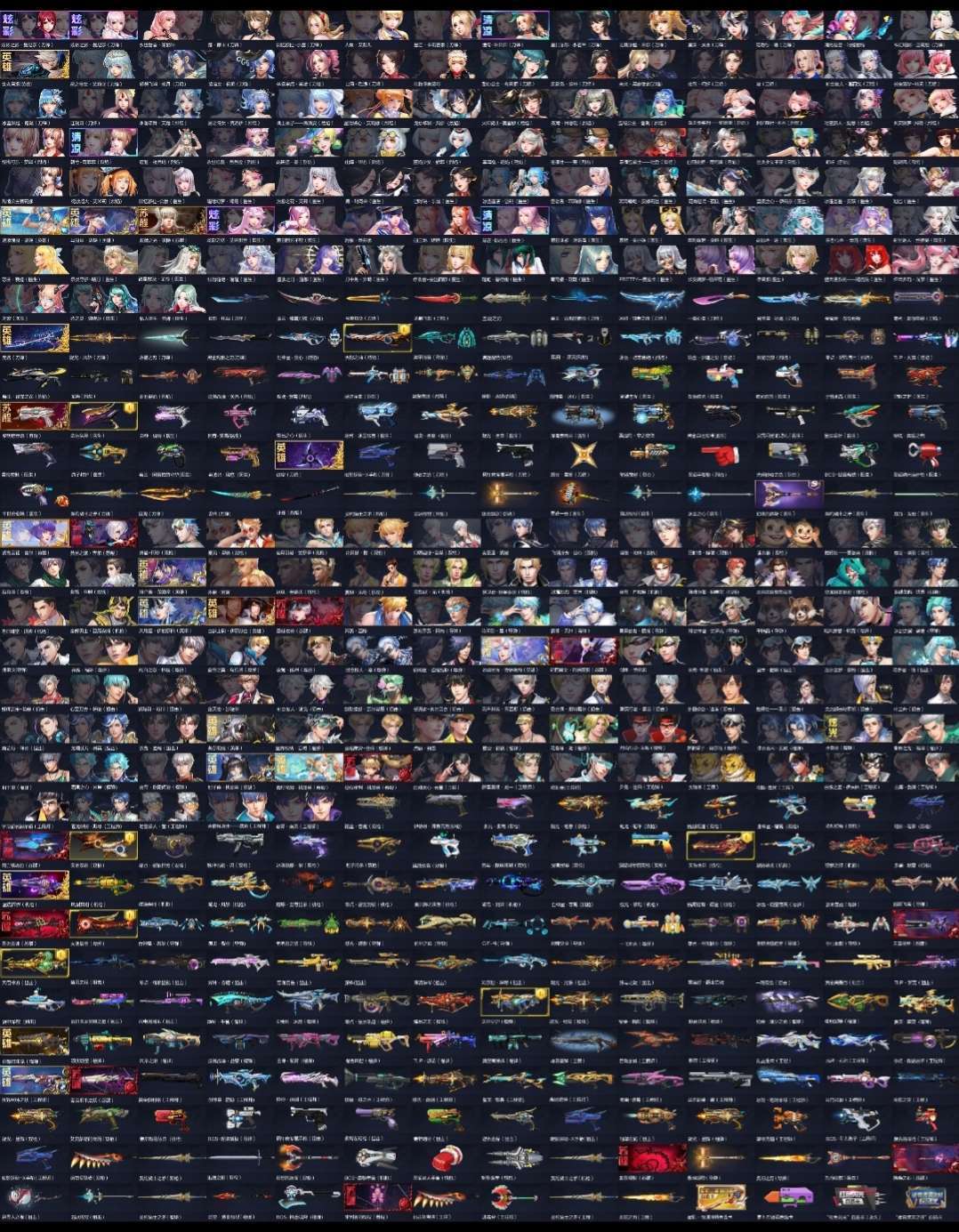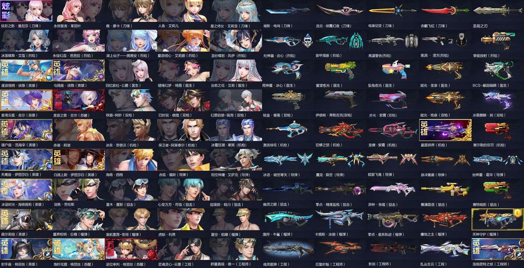 160页全职紫炮冰雨导,蛇机,铭金凝光圣痕猴,160页全职武器多皮肤8英雄9皮9冰神9粒子8零点