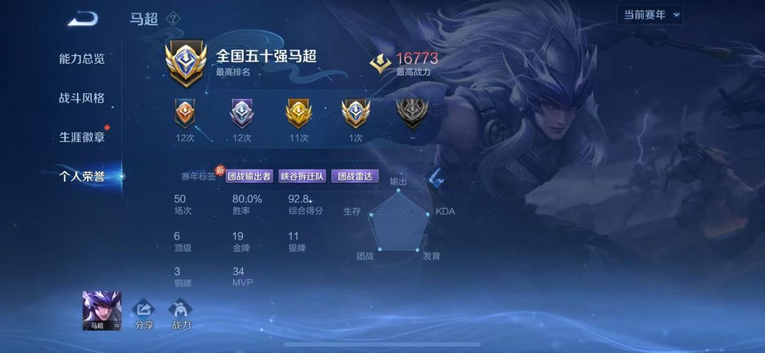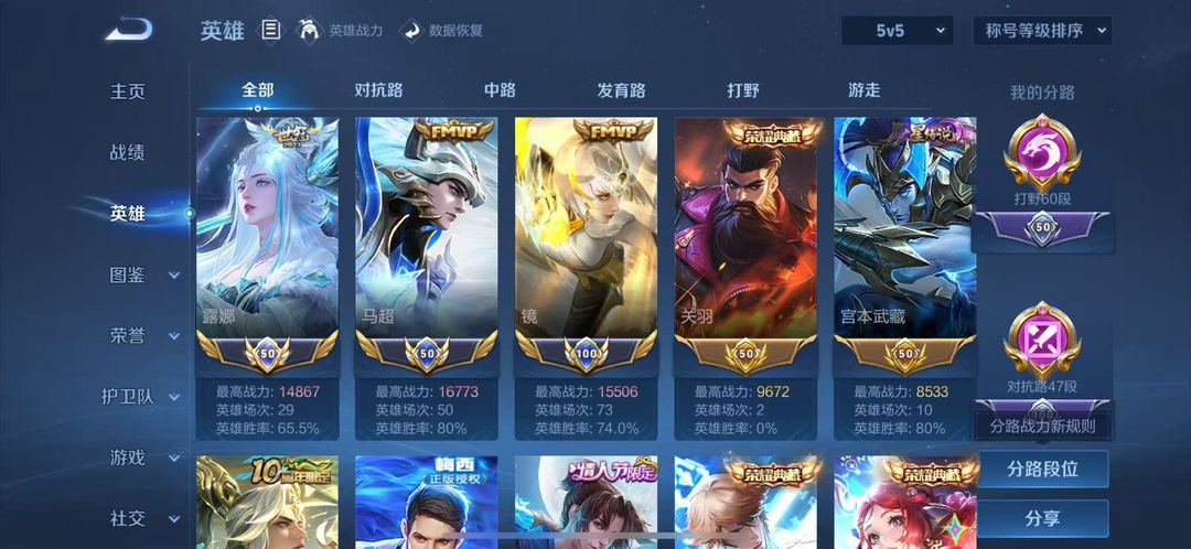 正式服历史1.7w小国标镜马超露娜⭐v10贵族皮肤共享⭐超多省级限定皮肤⭐可排位