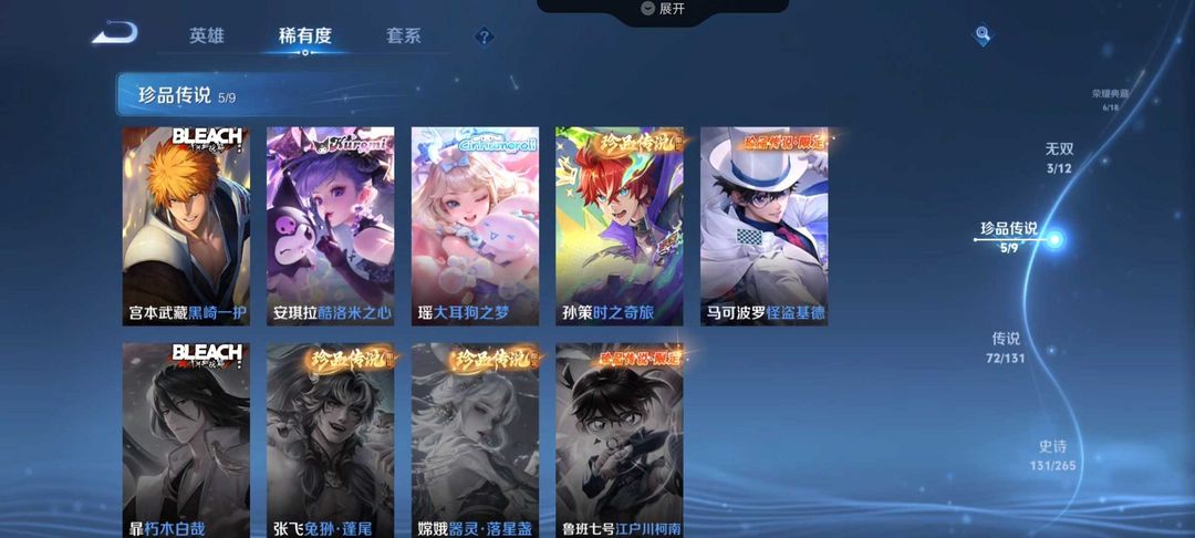 十周年皮肤全入貂蝉慕夏死神✨八十款传说皮肤七个典藏五珍品三无双四星传说60按键