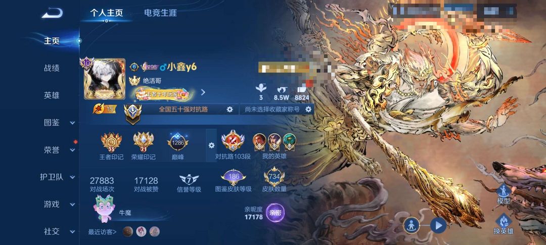 V11♥️741皮❤️对抗路103段,中路88段,历史11大国服,在榜全国50强对抗路,猴子无双限定