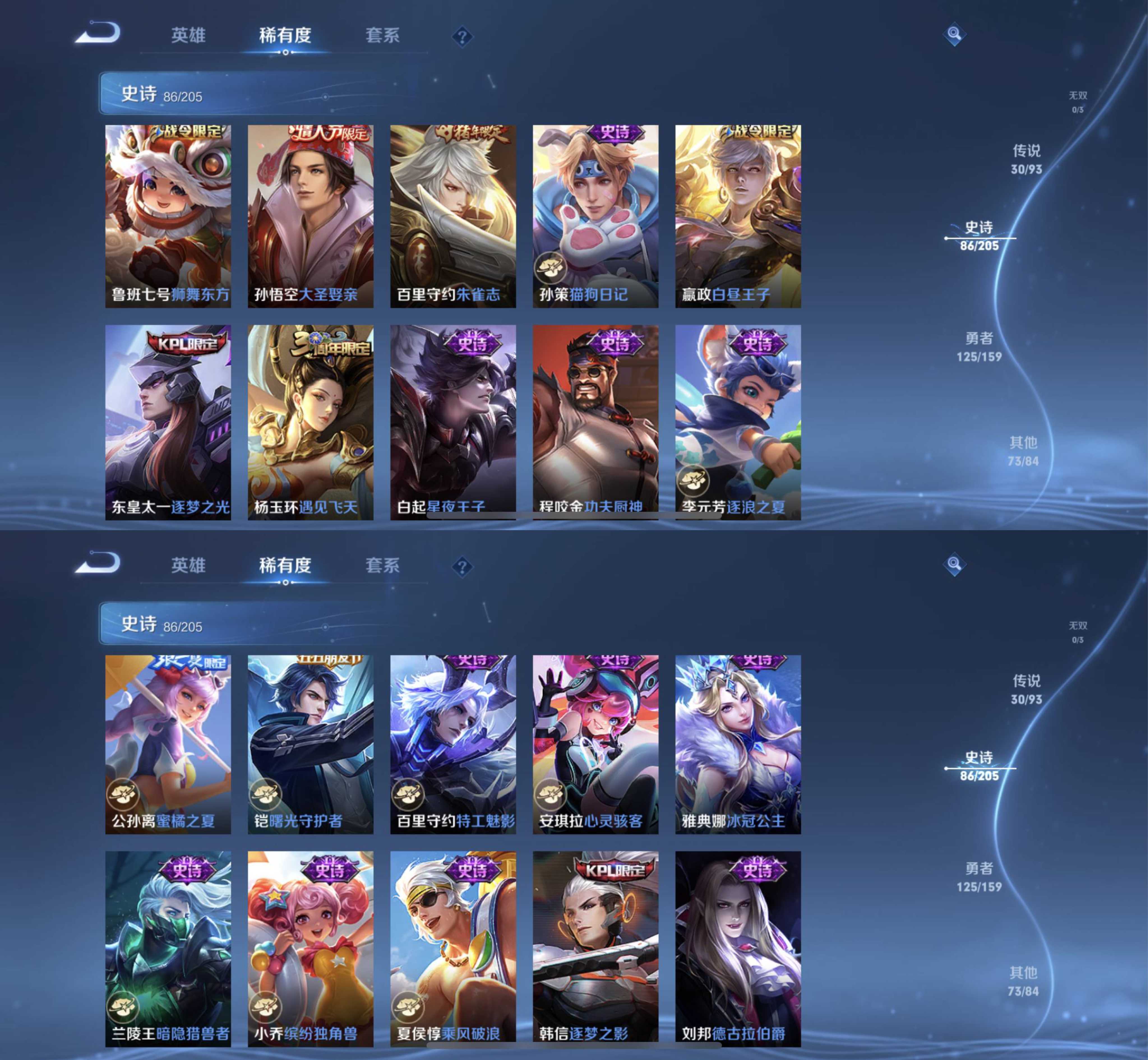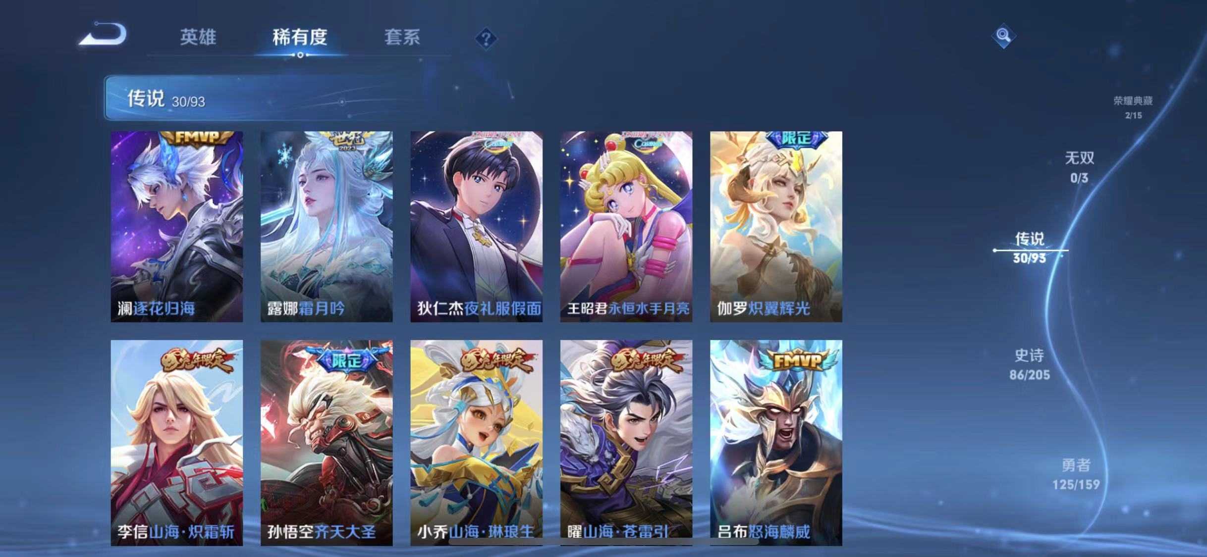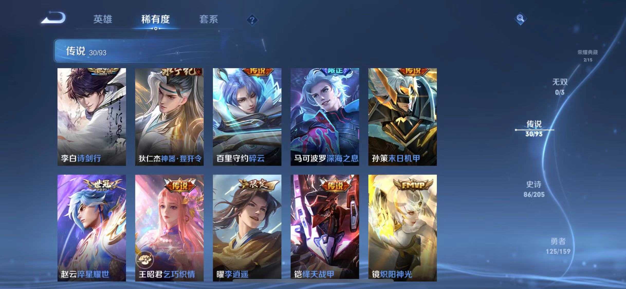 【V9 329皮】木兰李白典藏✨熬隐30传说澜新皮露娜世冠齐天大圣兔年限定深海之息神威岱宗天幕按