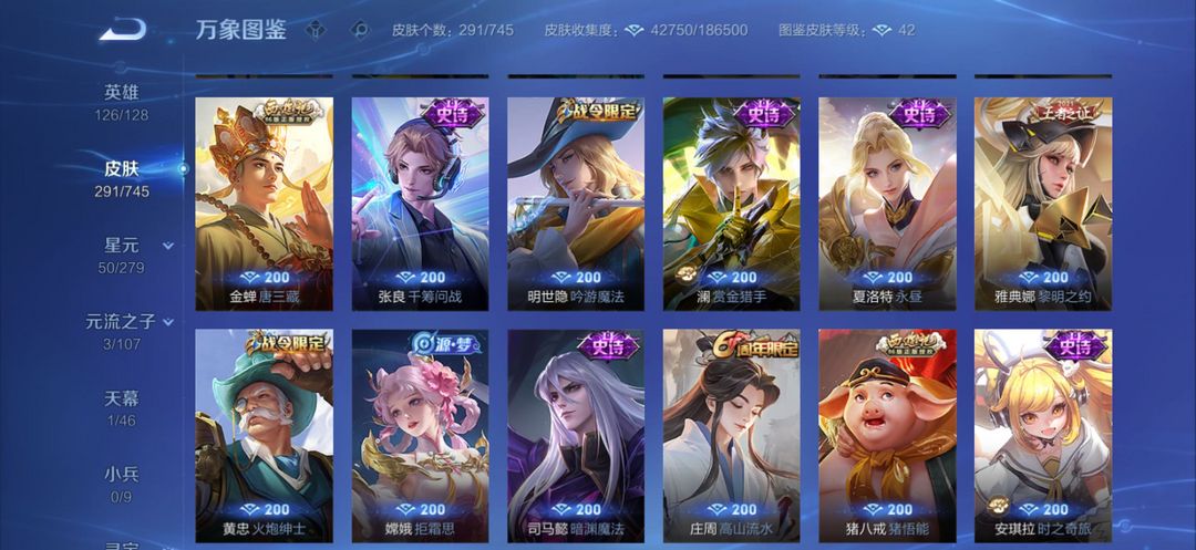 【V5 典藏:1 275皮】时雨天司⚡黄金分割率⚡白虎志⚡特工魅影⚡朱雀志⚡优雅恋人⚡不要毁号