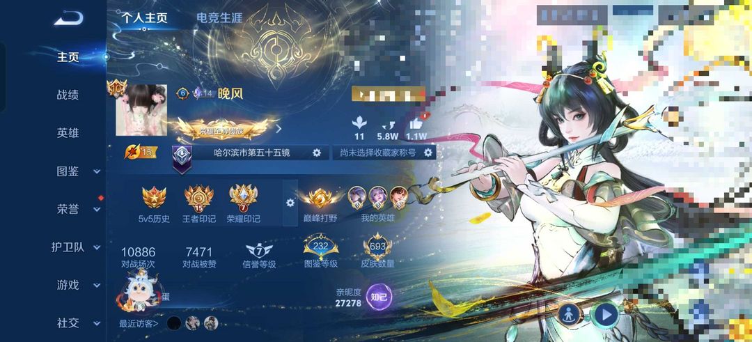 荣耀v10不禁言693皮❤️历史6国服镜李白露娜火舞艾琳小乔❤️