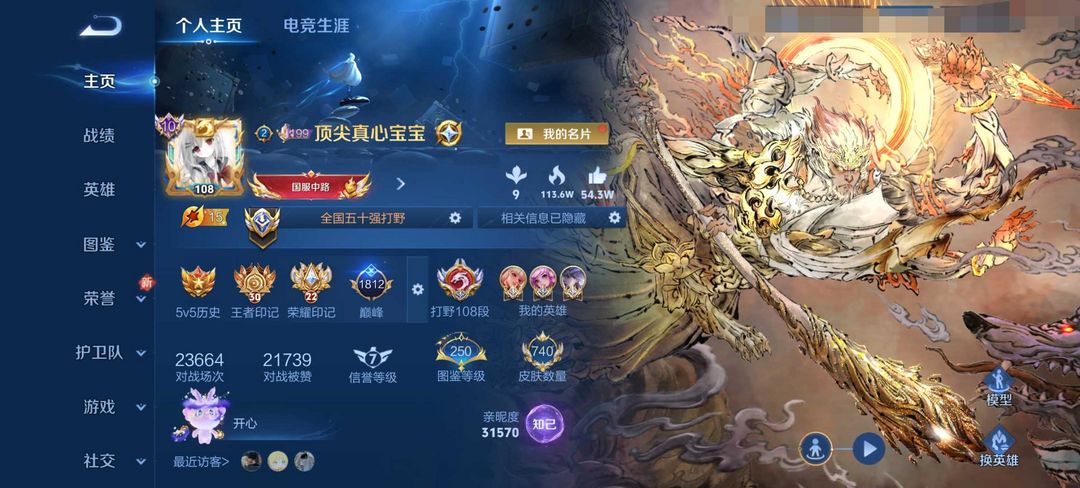 双百段打野108段中路103段历史24个大国服瑶大小乔镜虎⚡猴子无相新皮⚡诡秘之主全套