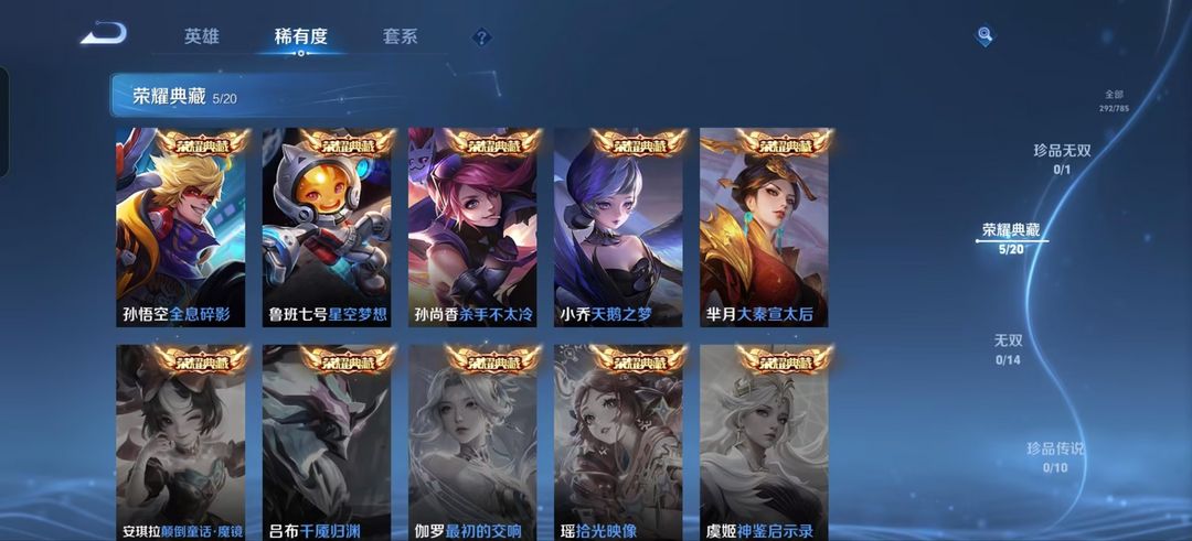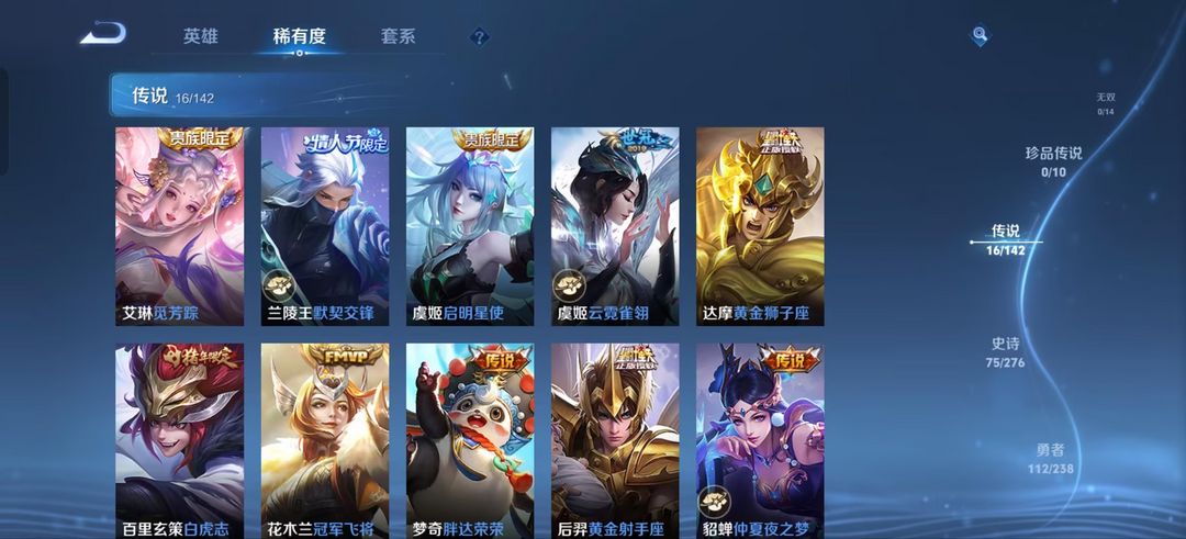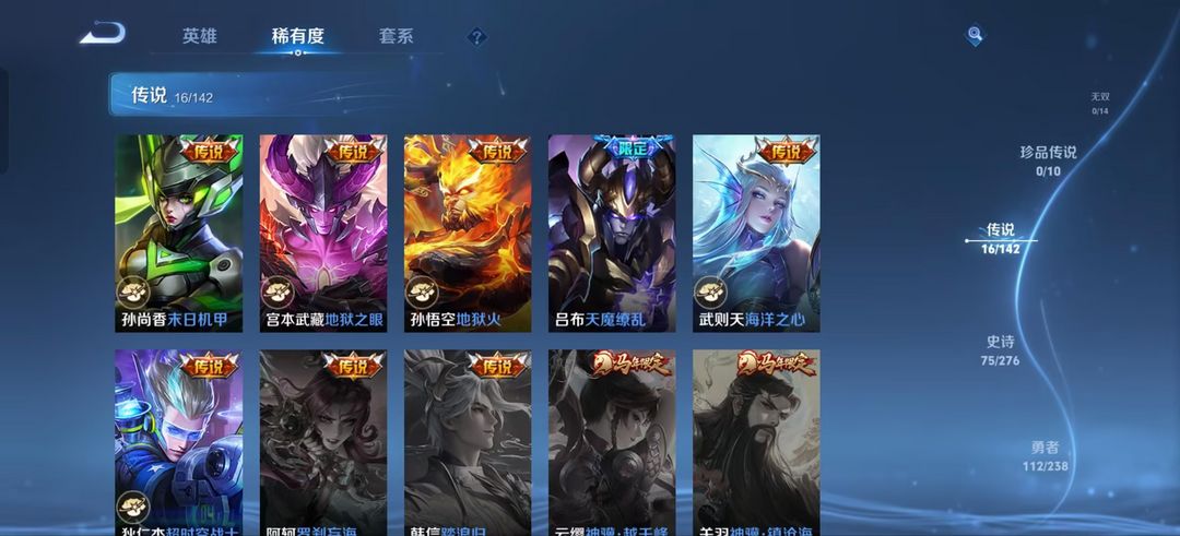 装备描述:裴擒虎(裴擒虎 擒涛扼浪,裴擒虎 天狼狩猎者,裴擒虎 梅西,裴擒虎 街头旋风,区标);百里玄策(百里玄策 白虎志,百里玄策 威尼斯狂欢,区标);孙悟空(孙悟空 全息碎影,孙悟空 美猴王,孙悟空 西部大镖客,孙悟空 地狱火);小乔(小乔 丁香结,小乔 缤纷独角兽,小乔 天鹅之梦,小乔 万圣前夜);典韦(典韦 蓝屏警告,典韦 穷奇,典韦 黄金武士);铠(铠 青龙志,铠 曙光守护者,铠 龙域领主);吕布(吕布 野性能量,吕布 猎兽之王,吕布 圣诞狂欢,吕布 天魔缭乱,吕布 末日机甲);芈月(芈月 重明,芈月 大秦宣太后,芈月 红桃皇后);达摩(达摩 黄金狮子座,达摩 大发明家,达摩 拳王);武则天(武则天 东方不败,武则天 海洋之心);艾琳(艾琳 觅芳踪);马可波罗(马可波罗 激情绿茵,马可波罗 逐梦之星);宫本武藏(宫本武藏 未来纪元,宫本武藏 万象初新,宫本武藏 地狱之眼,宫本武藏 霸王丸,宫本武藏 鬼剑武藏);诸葛亮(诸葛亮 掌控之力,诸葛亮 星航指挥官,诸葛亮 黄金分割率);兰陵王(兰陵王 默契交锋,兰陵王 暗隐猎兽者,兰陵王 隐刃);关羽(关羽 冰锋战神,关羽 天启骑士,关羽 龙腾