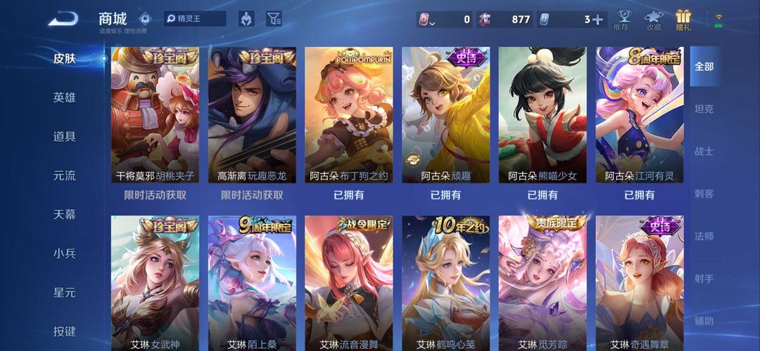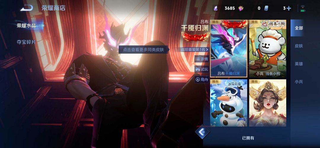 荣耀贵族全皮满典藏满星元满天幕⭐74段发育路历史六国服⭐孙悟空无双吕布荣耀典藏满个性小兵商城清空