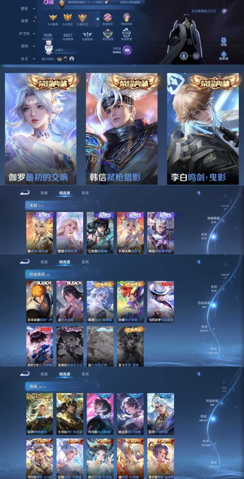 禁止改名✨5无双6珍品69传说✨死亡执政官九山相柳✨黑崎一护朽木白哉✨最初的交响螭龙剑✨落星盏全蛇年