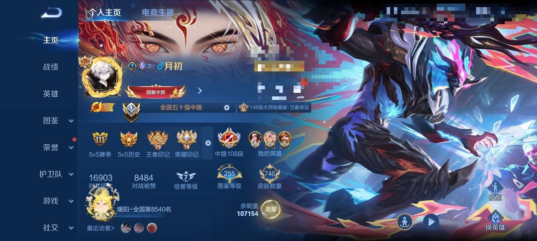 V12❤️748皮肤❤️108段中路,全国50强中路,历史大国小乔等,共历史9大国服,神豪带妹神器
