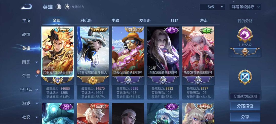 ⭐历史小国标老虎1.4w战力高胜率⭐1.4w数字金标马超⭐55段打野⭐男神号巅峰已开
