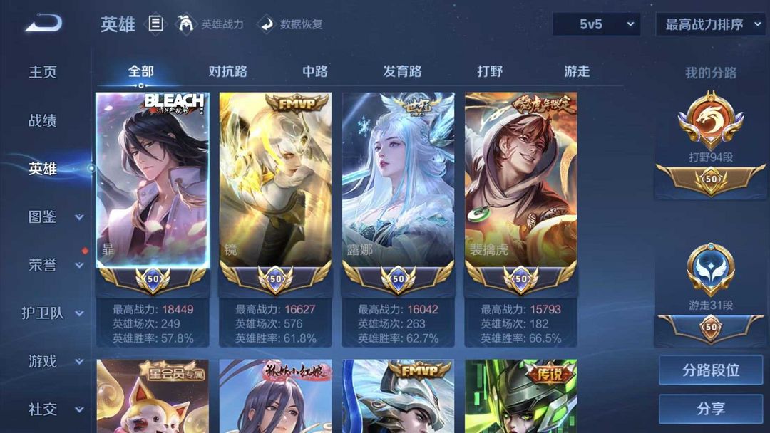 1月在榜市标镜露娜老虎马超暃⭐94段打野⭐历史小国镜露娜老虎暃大国梦奇⭐巅峰1400可打巅峰赛⭐带妹