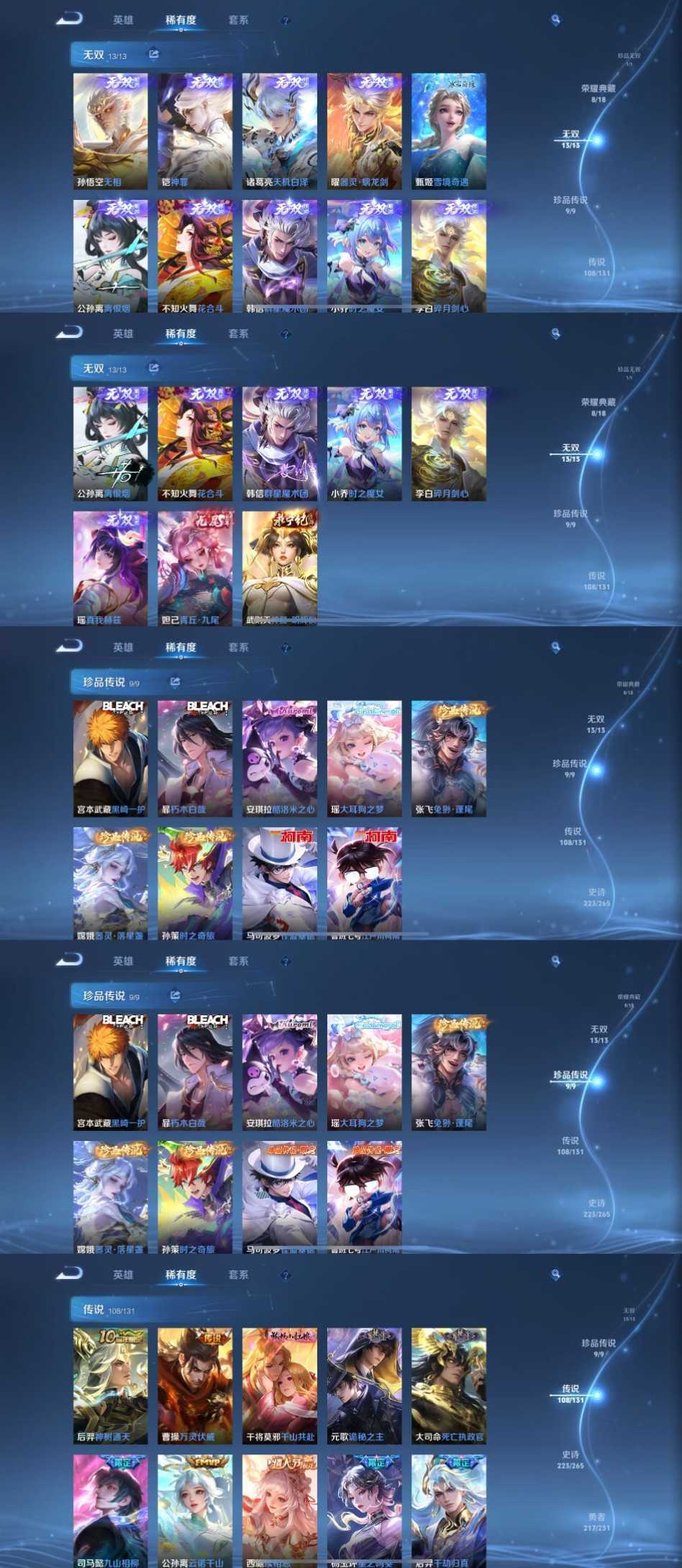 漂亮女号✨9典藏13无双9珍品108传说✨万战西施万战小乔✨万战大乔万战孙膑✨万战少司缘万战嫦娥