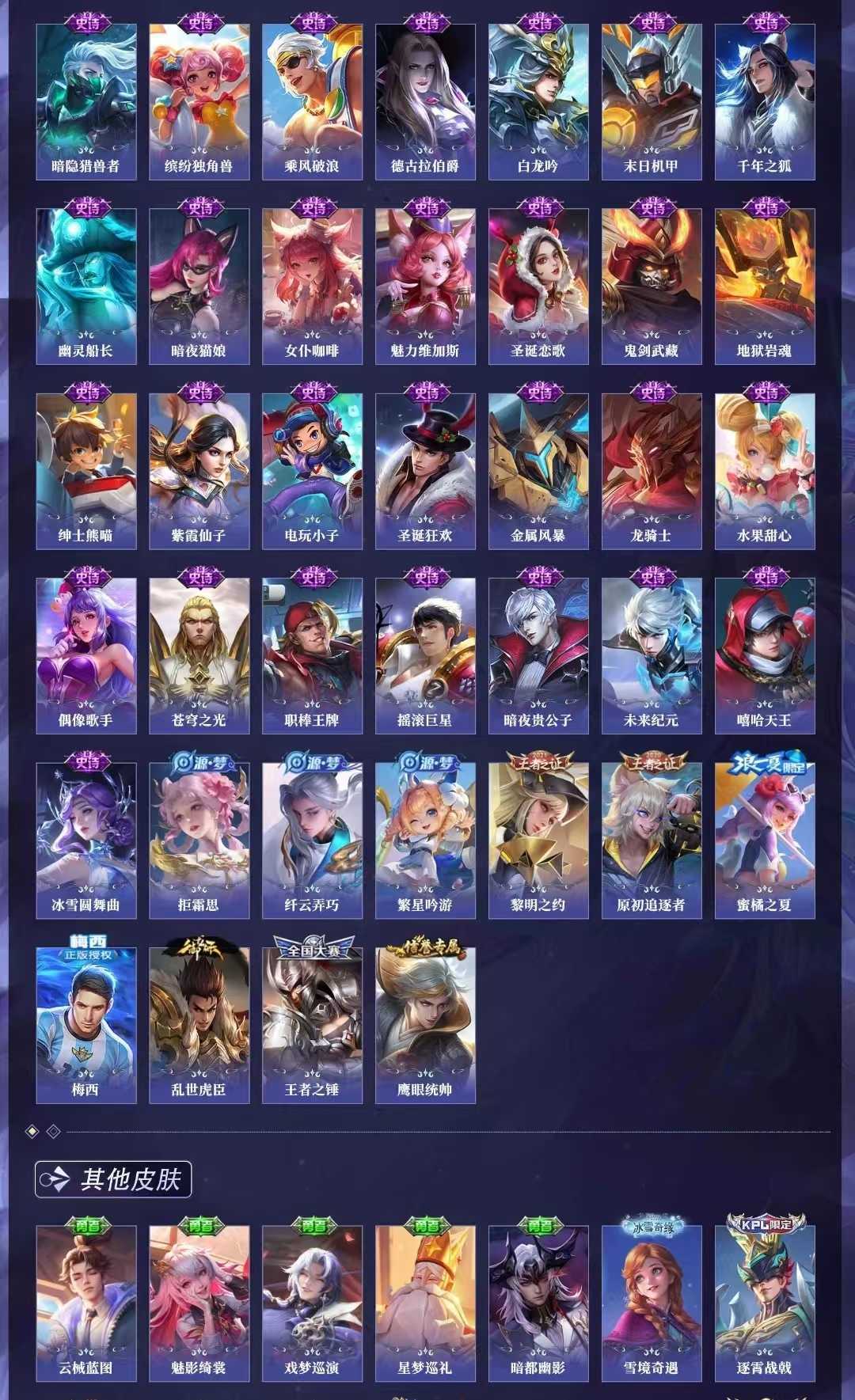 限制: 租号5次及以上 |装备描述:【C361】421皮10典藏45传说金标老虎幻阙歌,鸣剑曳影,倪克斯神谕,活力突击,无限飓风号,全息碎影,星空梦想,杀手不太冷,大秦宣太后,天鹅之梦【优质限定皮肤】:无双飞将,祈雪灵祝,武圣,神威,白虎志,梅西,天魔缭乱,至尊宝,凤求凰