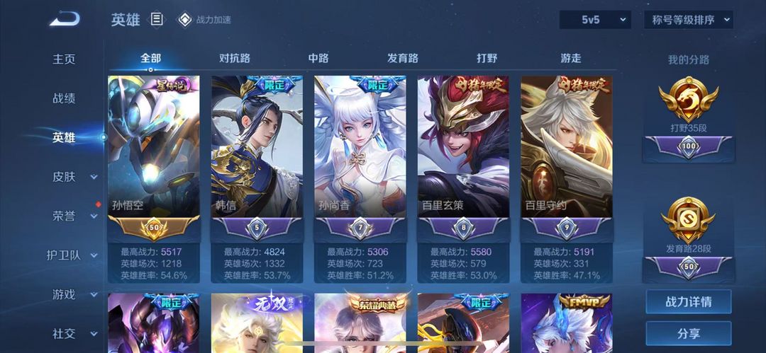 贵族V10✨极品号✨游走34段✨4水晶4星元紫瑶+典藏✨瑶玄策啊离金标桥妲己无双
