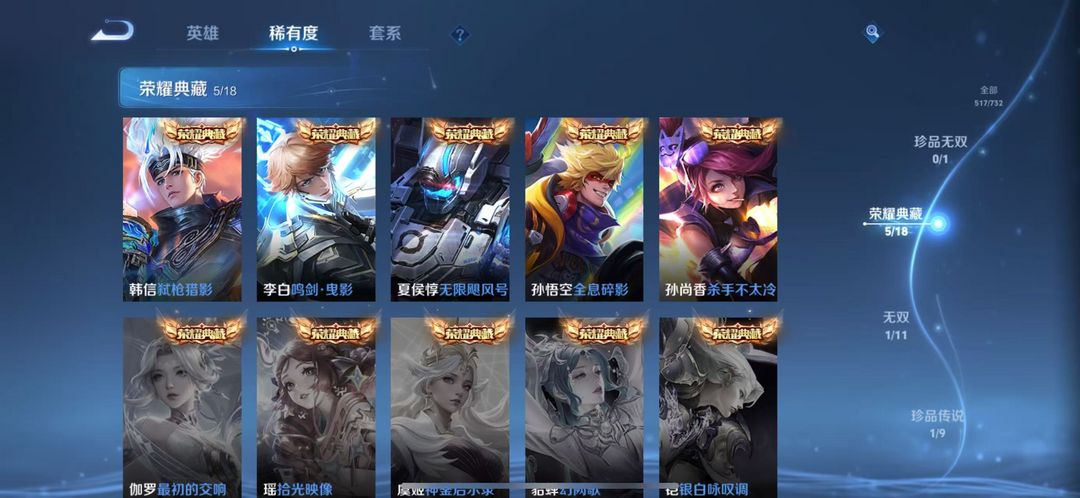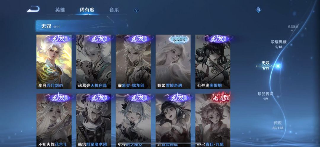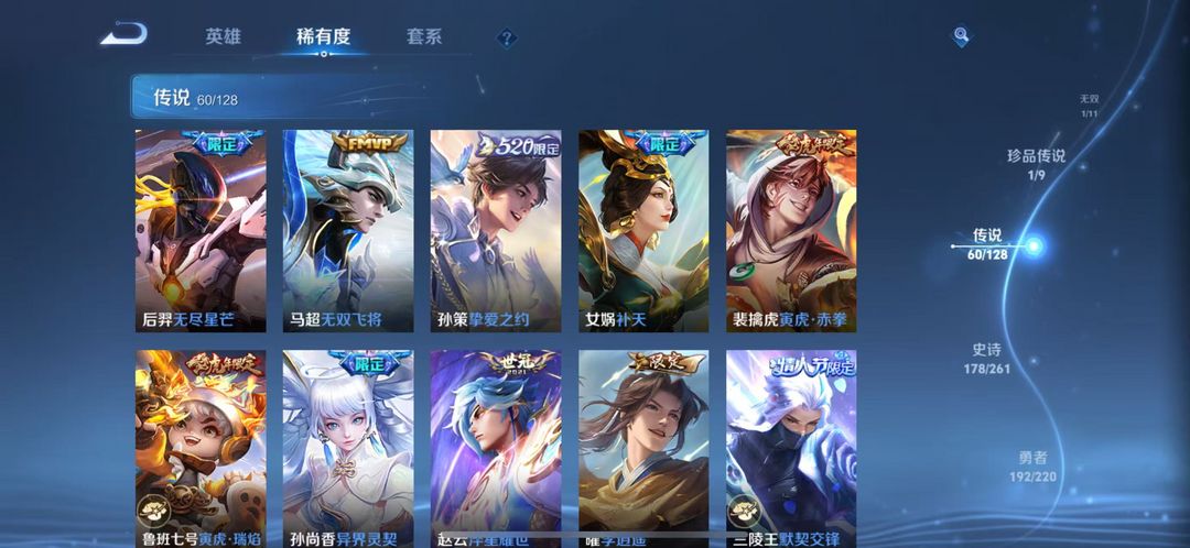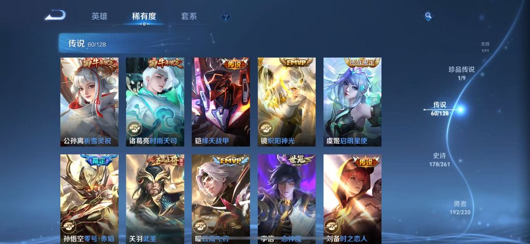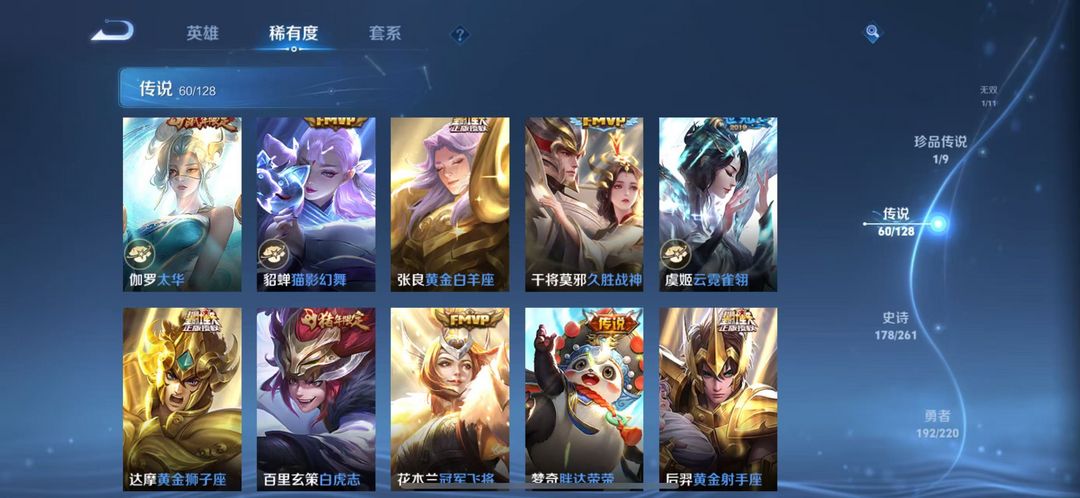 金标在榜夏侯✨贵族V10✨对抗34段✨6水晶李白无双✨珍品马可波罗怪盗基德✨满蛇年