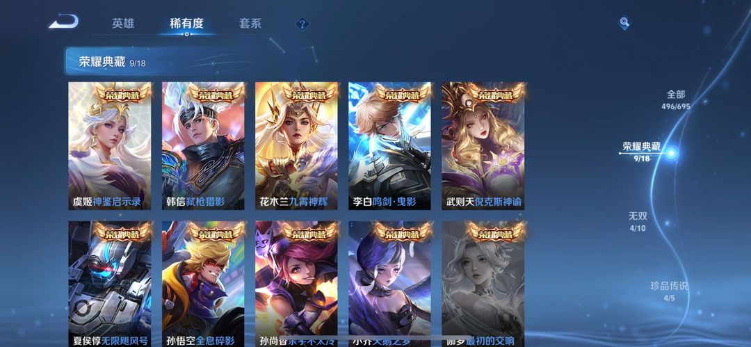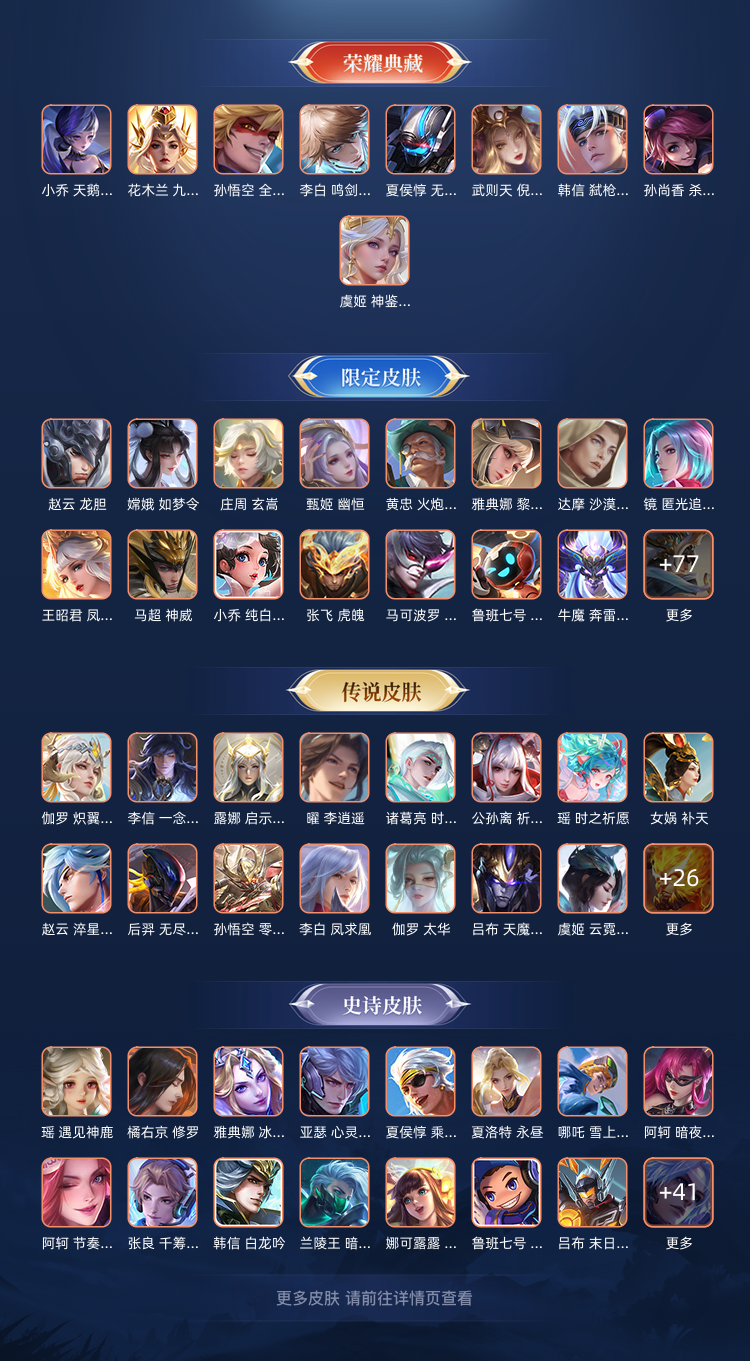 限制: 租号2次及以上 |装备描述:【V10 典藏:10 500皮】4无双4珍品螭龙剑/雪境奇遇/满蛇年/鲁班柯南/落星盏/孙策时之奇旅/怪盗基德/时之魔女/真我赫兹韩信-弑枪猎影/虞姬-神鉴启示录/花木兰-九霄神辉/李白-鸣剑·曳影/武则天-倪克斯神谕/孙尚香-杀手不太冷/小乔-天鹅之梦/孙悟空-全息碎影/夏侯惇-无限飓风号瑶-真我赫兹/曜-器灵·螭龙剑/小乔-时之魔女/甄姬-雪境奇遇苏烈-春野闲踪/阿轲-化蝶舞/西施-续相思/盘古-冰霜神祇/后羿-千劫归真/杨玉环-星之鸣奏/澜-愿照·九州拓/妲己-愿照·众生和/蔡文姬-愿照·福禄聚/虞姬-愿照·岁时盈/司空震-愿照·山河定/女娲-愿照·千秋盛/赵怀真-器灵·浮梦炉/嫦娥-器灵·落星盏/西施-雪境奇遇/孙策-时之奇旅/牛魔-星界战将/马超-访茗客/孙膑-茶境仙/嬴政-玄雷天君/太乙真人-谧流熔炉/鲁班七号-江户川柯南/马可波罗-怪盗基德/百里守约-百相守梦/老夫子-百相守梦/甄姬-游园惊梦/东皇太一-噬灭天穹/蔡文姬-夏日便利店/伽罗-炽翼辉光/孙尚香-蔷薇恋人/姜子牙-天穹之誓/虞姬-夏日便利店/沈梦溪-龙舞盛年/李元芳-蔬乡物语/妲己-灵卜魔法/高渐离-燃音魔法/