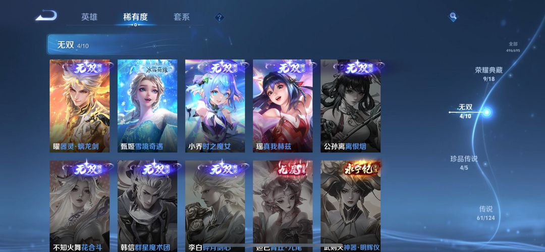 【V10 典藏:10 501皮】4无双4珍品螭龙剑/雪境奇遇/满蛇年/鲁班柯南/落星盏/孙策时之奇旅