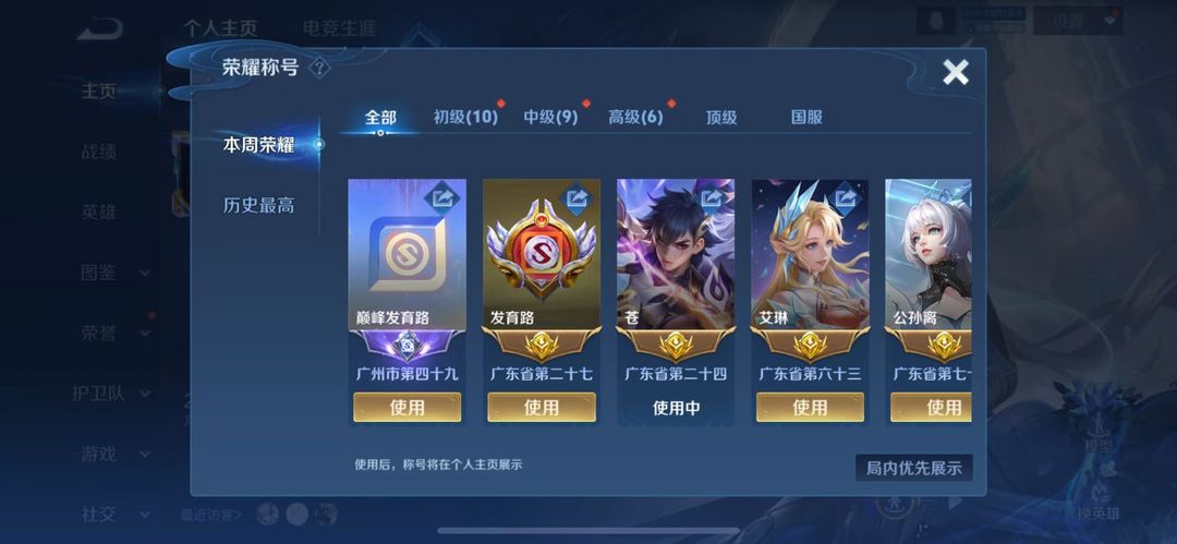 100段发育路➕6省标公孙离/艾琳在榜⭐️巅峰1934万强闪电框/局内显示名/历史10国服⭐️禁巅峰