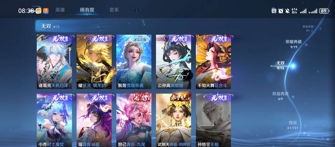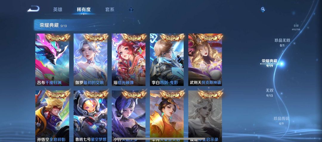 极品无双V10女号492皮王者账号出租!9荣耀典藏 + 9 无双限定 + 全英雄,可正常聊天
