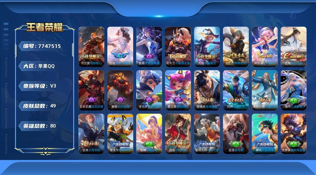 游戏区服:王者荣耀-QQ苹果-QQ账号