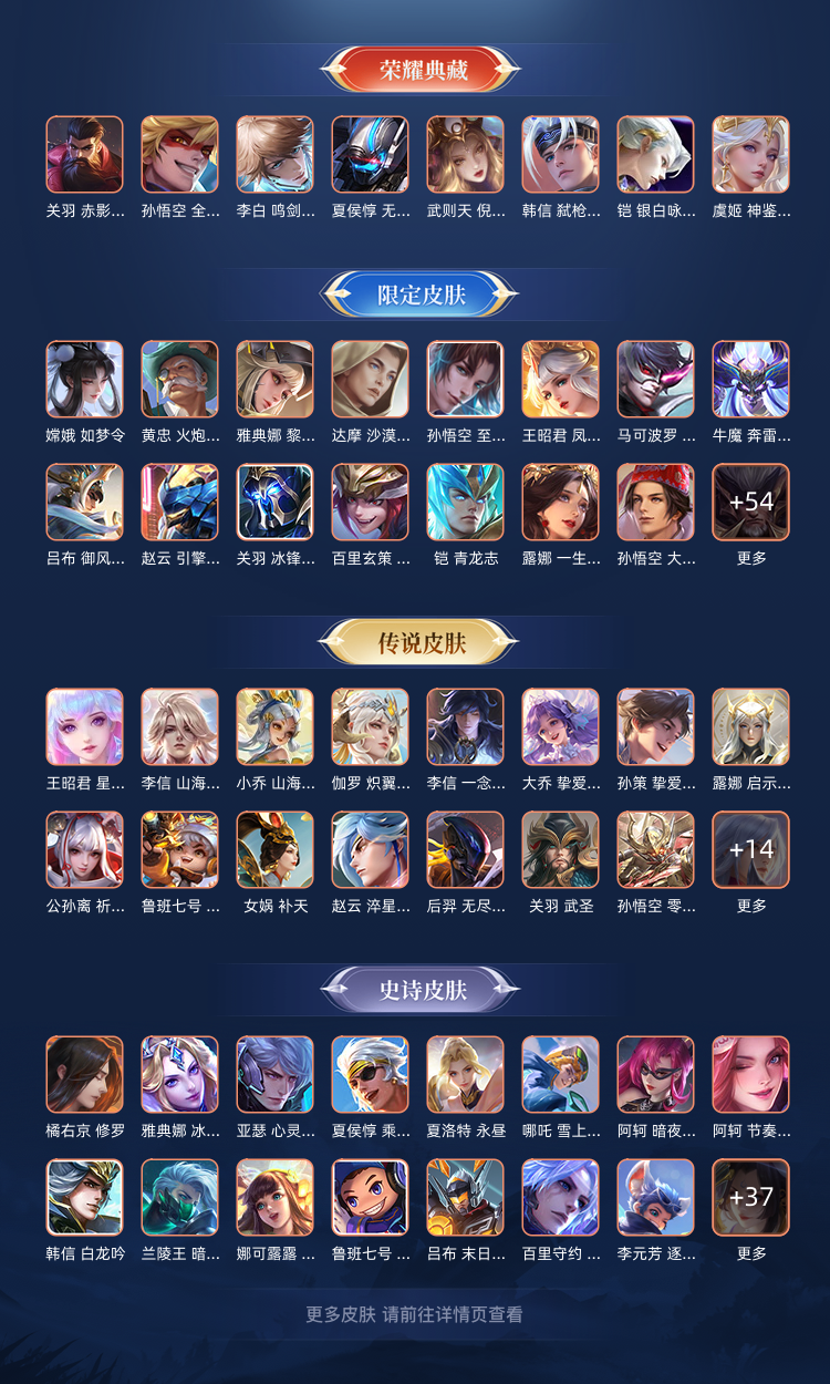 装备描述:565皮肤⚡️荣耀典藏8个⚡️无双皮肤9个⚡️珍品传说皮肤4个⚡️喜欢收藏一下禁止利用账号进行开挂、使用辅助违规软件诈骗等违规操作。