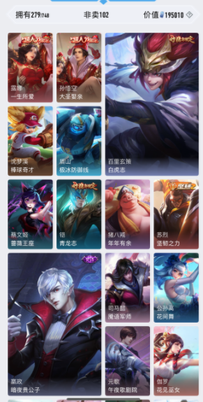 限制: 租号1次及以上 |装备描述:英雄:孙悟空(孙悟空 大圣娶亲,孙悟空 至尊宝,孙悟空 西部大镖客,孙悟空 地狱火);后羿(后羿 如梦令,后羿 辉光之辰,后羿 黄金射手座,后羿 阿尔法小队,后羿 精灵王);李白(李白 敏锐之力,李白 范海辛,李白 凤求凰,李白 千年之狐);宫本武藏(宫本武藏 未来纪元,宫本武藏 万象初新,宫本武藏 霸王丸,宫本武藏 地狱之眼,宫本武藏 鬼剑武藏);韩信(韩信 飞衡,韩信 逐梦之影,韩信 教廷特使,韩信 街头霸王,韩信 白龙吟);诸葛亮(诸葛亮 星域神启,诸葛亮 掌控之力,诸葛亮 黄金分割率,诸葛亮 星航指挥官);吕布(吕布 天魔缭乱,吕布 圣诞狂欢,吕布 野性能量,吕布 猎兽之王,吕布 末日机甲);钟馗(钟馗 驱傩正仪,钟馗 神迹守卫,钟馗 地府判官);关羽(关羽 天启骑士,关羽 龙腾万里);孙尚香(孙尚香 沉稳之力,孙尚香 水果甜心,孙尚香 末日机甲,孙尚香 火炮千金);赵云(赵云 未来纪元,赵云 龙胆,赵云 忍·炎影,赵云 引擎之心,赵云 皇家上将,赵云 白执事);东皇太一(东皇太一 逐梦之光,东皇太一 东海龙王);马可波罗(马可波罗 暗影游猎,马可波罗 激情绿茵);杨戬(杨戬