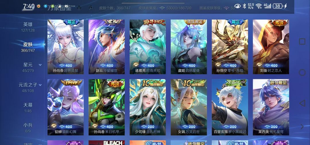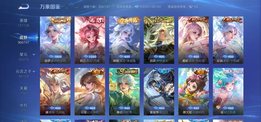 v8钻石段1典藏1无双1珍品传说17传说皮肤