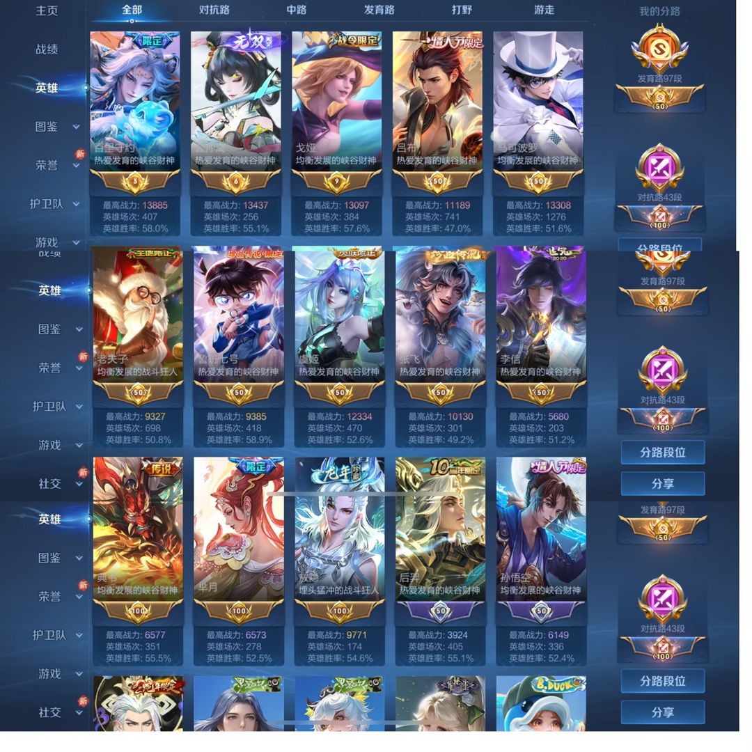 禁排行巅峰-没禁言-在榜97段巅峰发育路❤5个在榜省标❤7个小国❤按键多