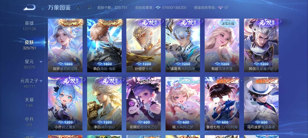 孙悟空新皮肤32传说皮皮无相婉儿李白全皮340+皮肤法师射手打野专属号