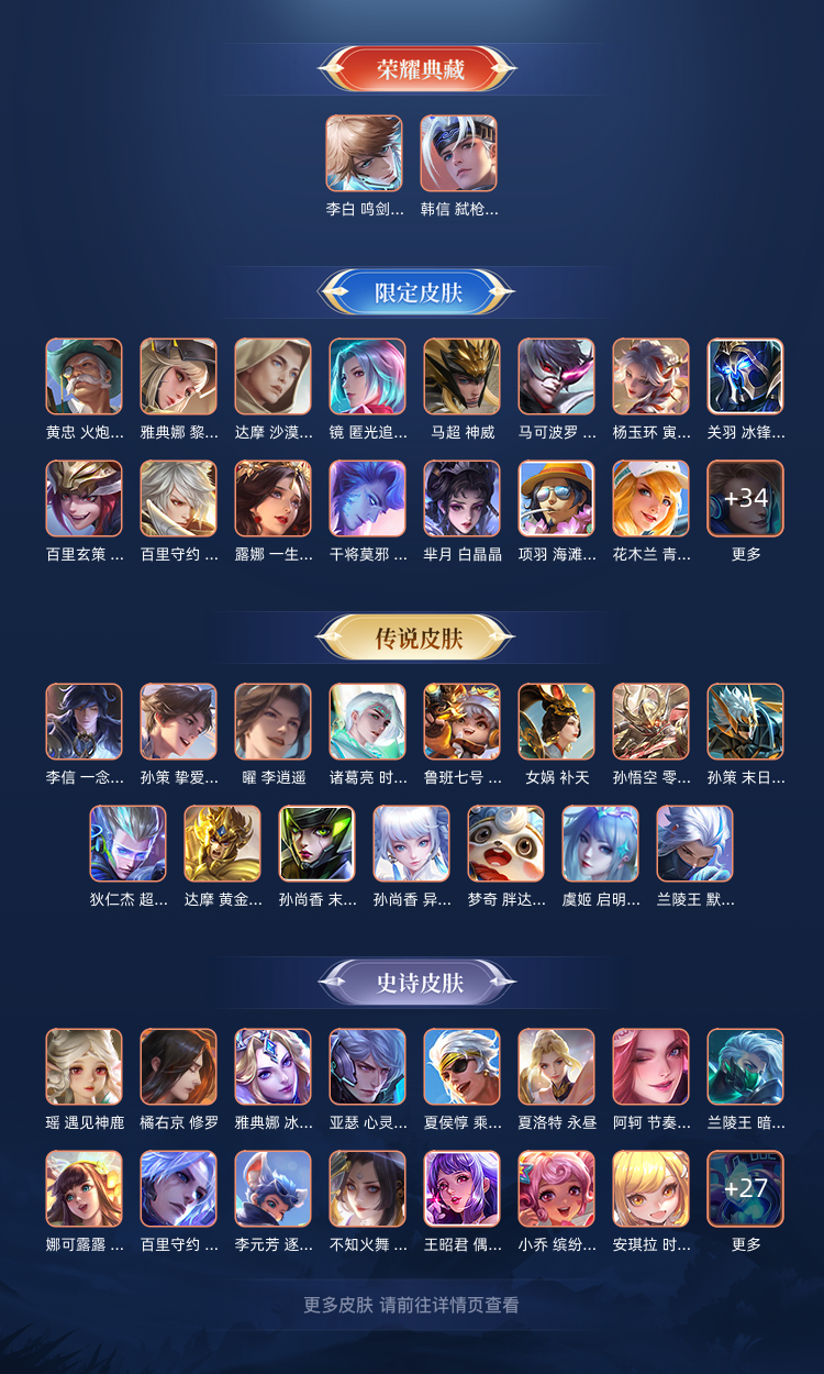 [苹果q区 荣耀王者] 127英雄308皮肤 鸣剑 弑枪猎影 白虎志 超多英雄和皮肤