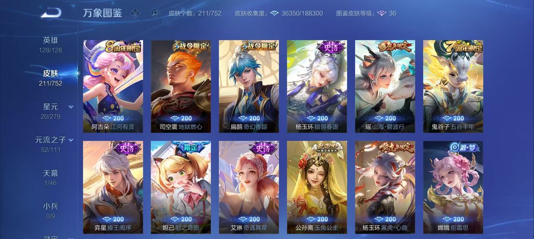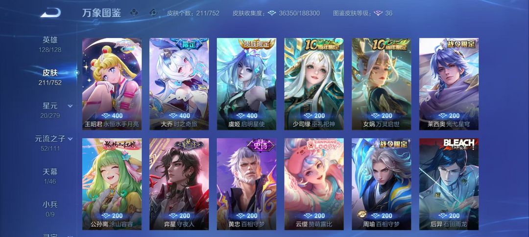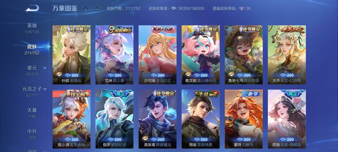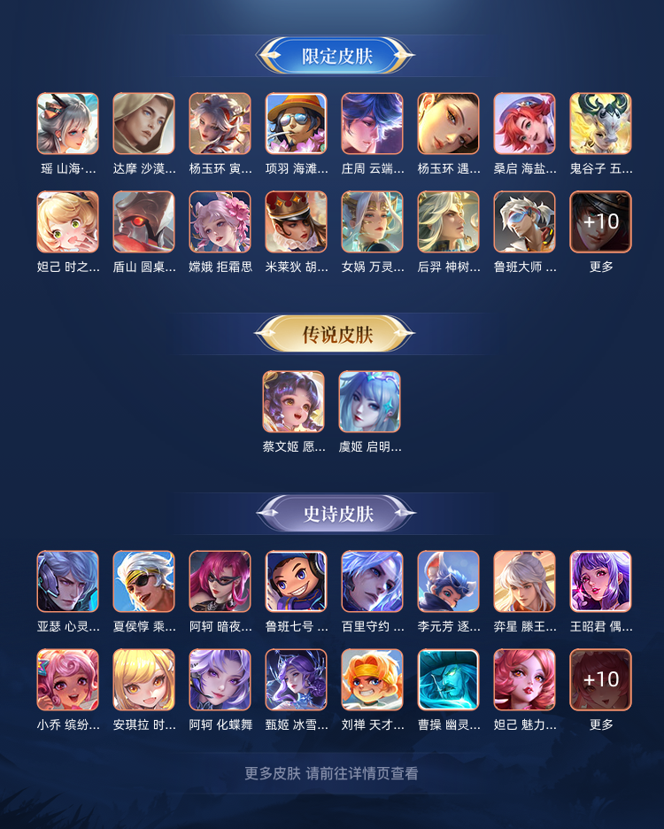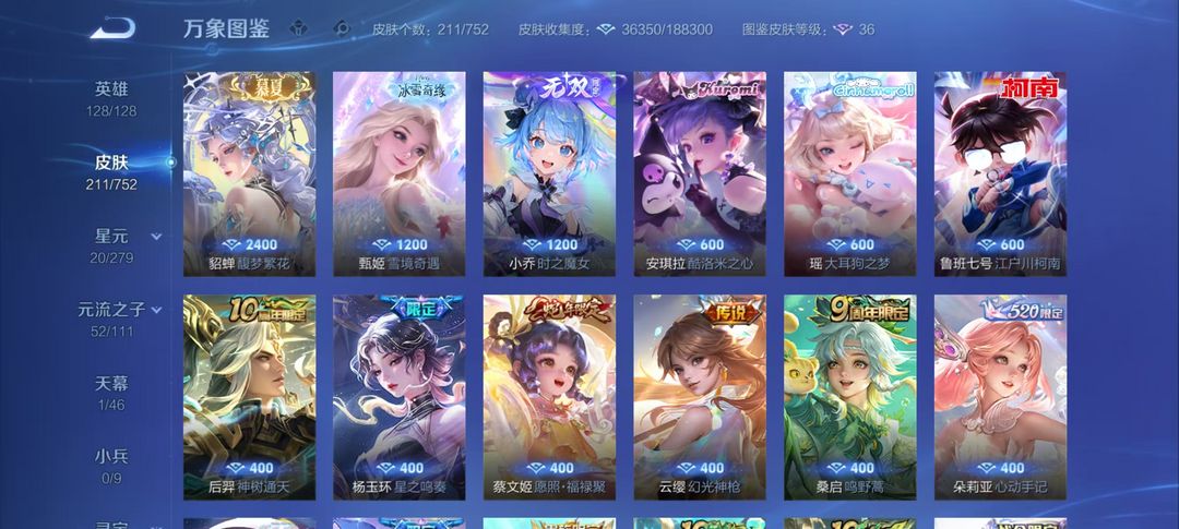 装备描述:貂蝉-馥梦繁花 小乔-时之魔女 甄姬-雪境奇遇 安琪拉-酷洛米之心 瑶-大耳狗之梦 大乔-时之奇旅 朵莉亚-心动手记 鲁班-江户川柯南 王昭君-永恒水手月亮 公孙离-玉兔公主