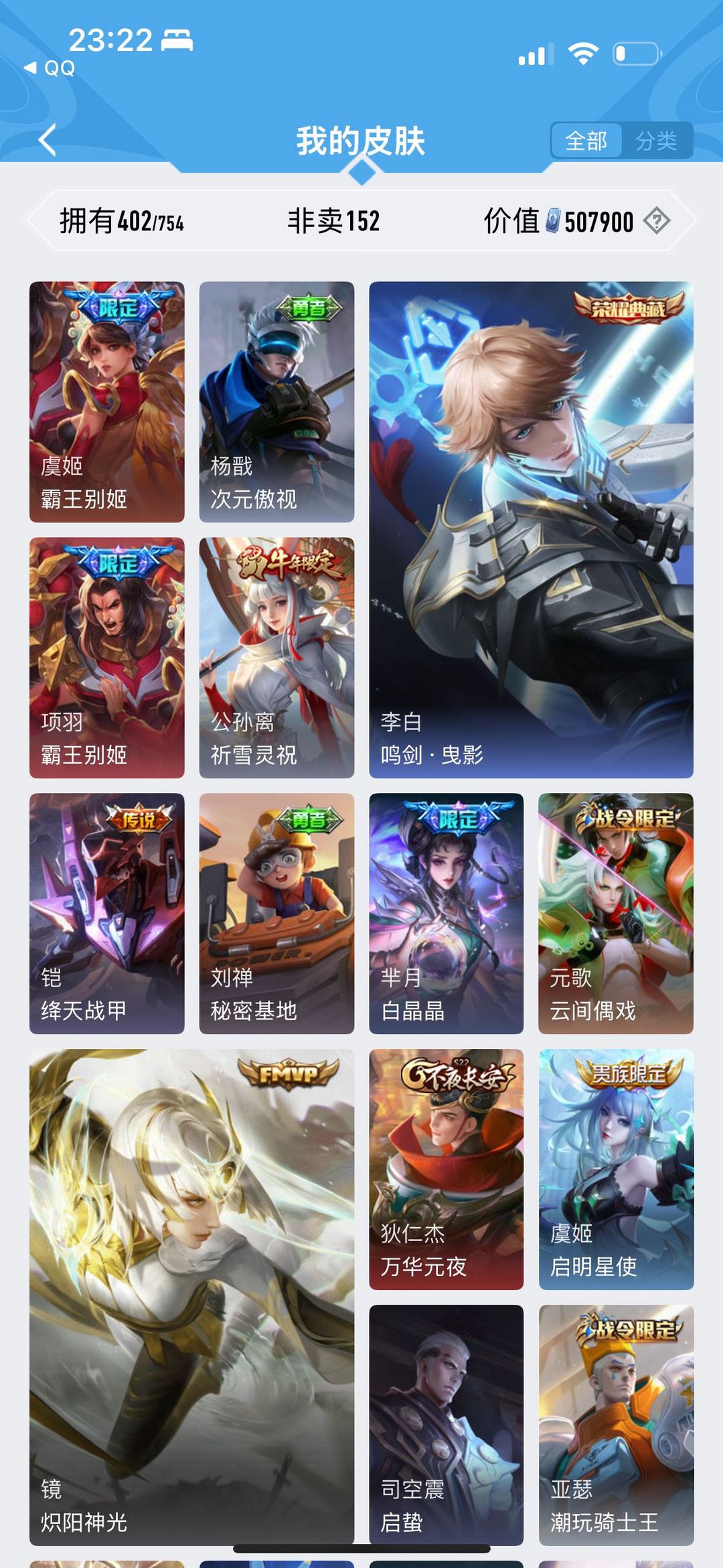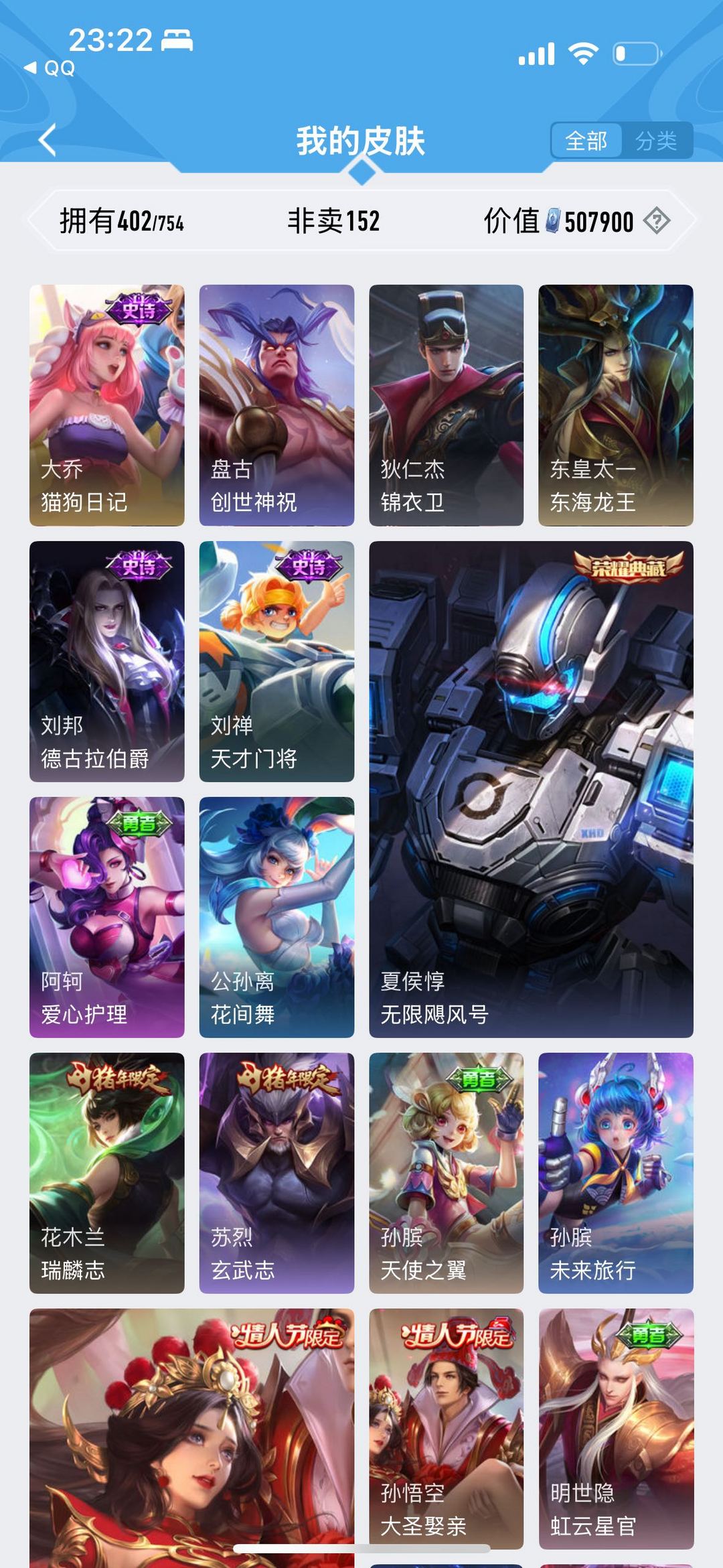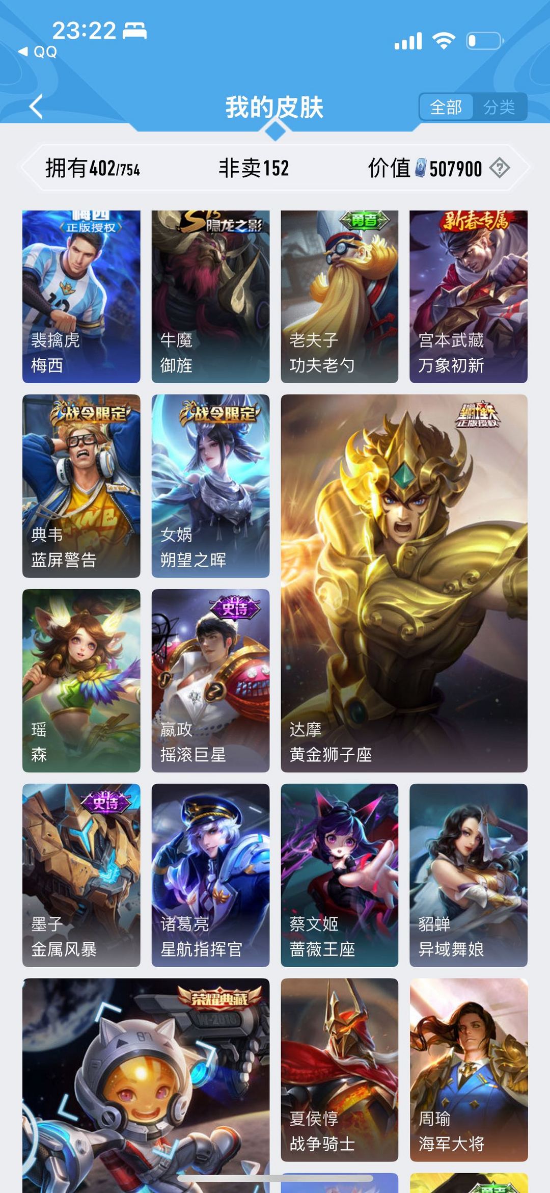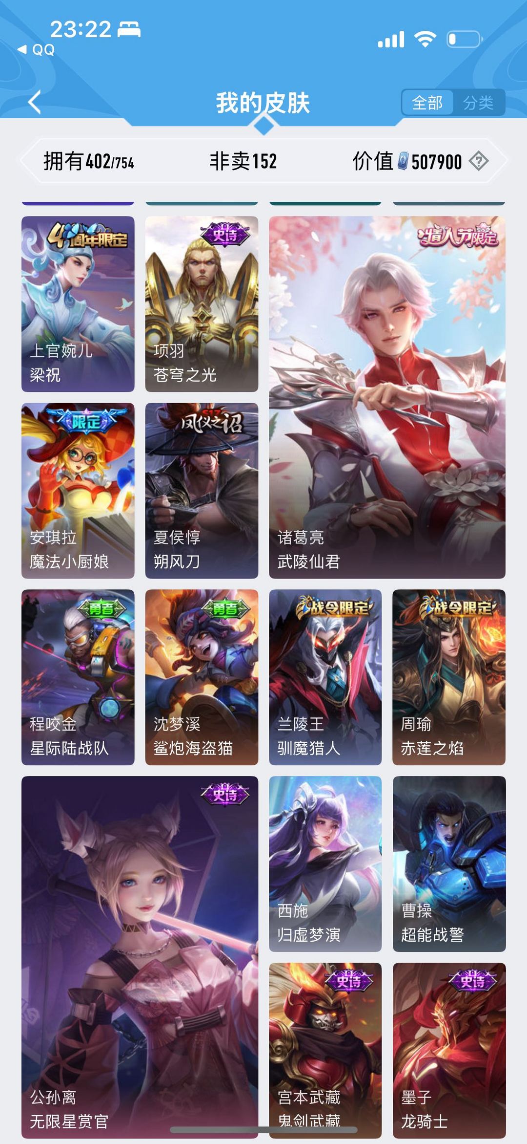 V10带妹号⭐️402皮⭐️限定皮多⭐️11典藏皮⭐️梅西⭐️武陵仙君⭐️名侦探马克