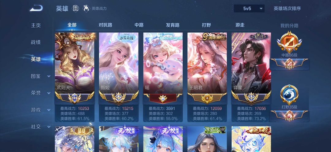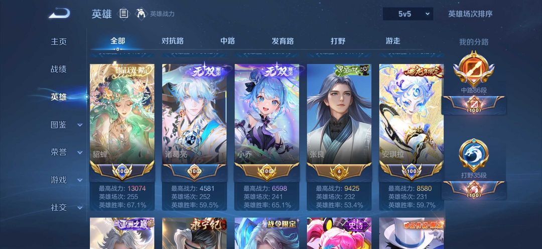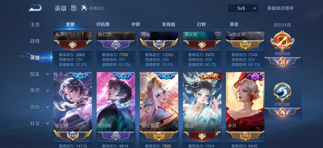 无双贵族v10❤️86段中路❤️大国甄姬弈星小国貂蝉武则天妲己周瑜杨玉环❤️满典藏无双珍品