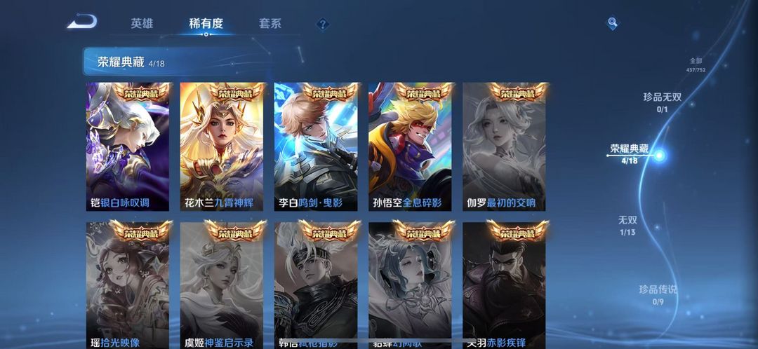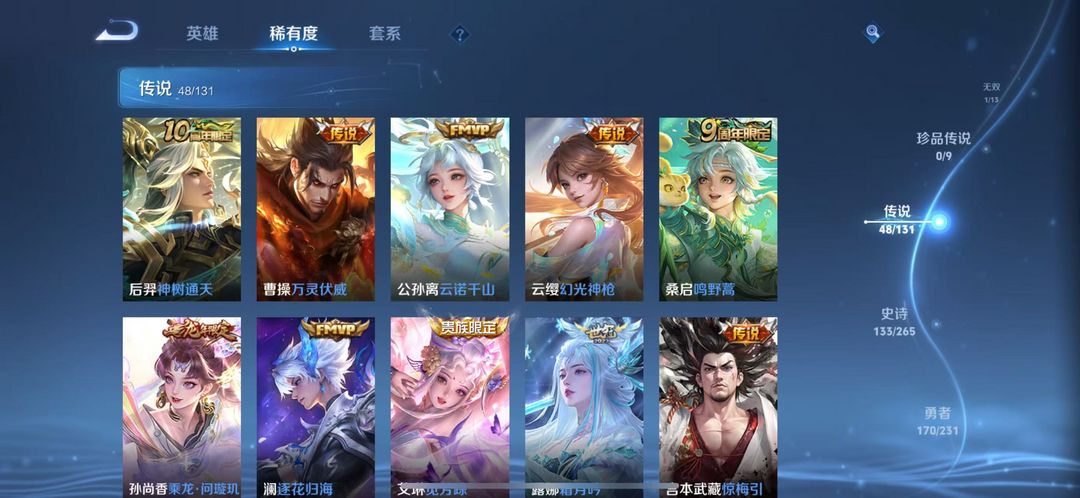 V10 437皮4典藏1无双碎月剑心48传说7星幽冥火金貂蝉幽冥之眼未来机甲星际治安官时之思念黛羽霜