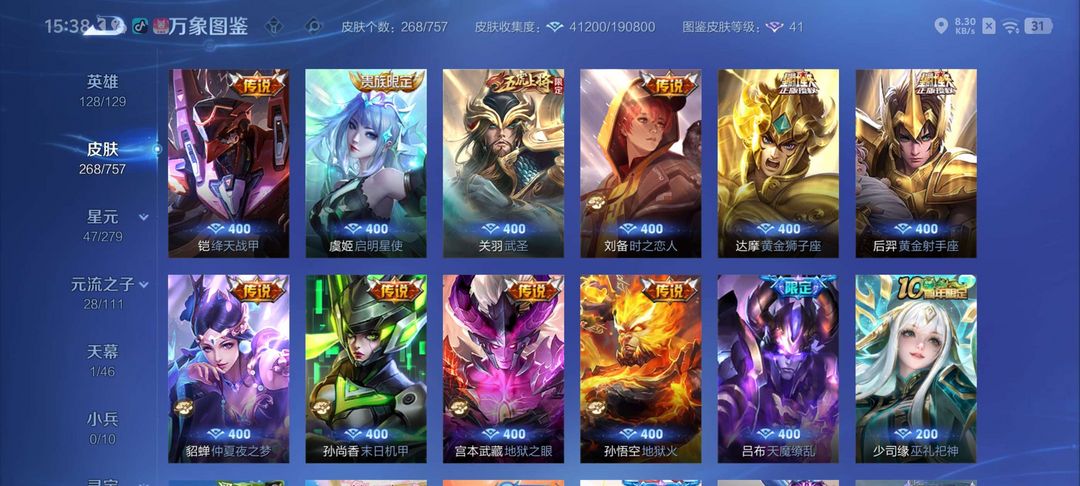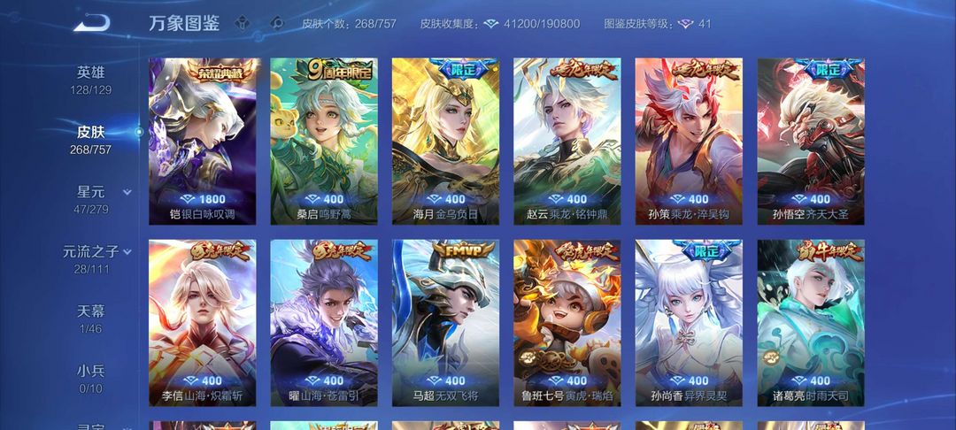 V8⚡268皮⚡银白咏叹调⚡金貂蝉⚡关羽武圣⚡天魔缭乱⚡齐天大圣⚡赵云铭钟鼎⚡孙策淬吴钩⚡李信炽霜斩