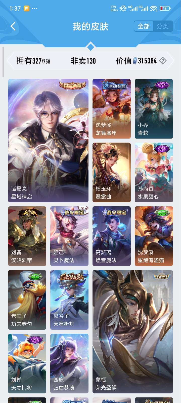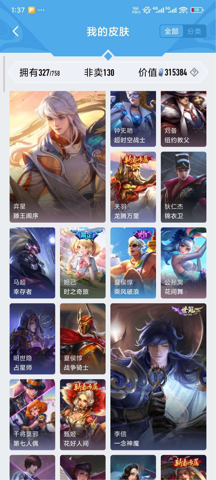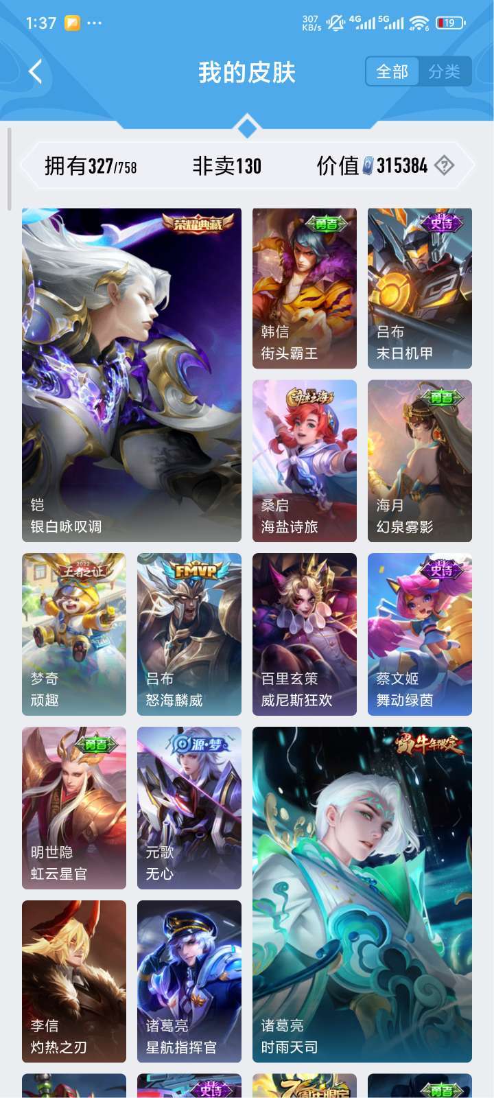 全铭文,327皮肤,贵9质量号