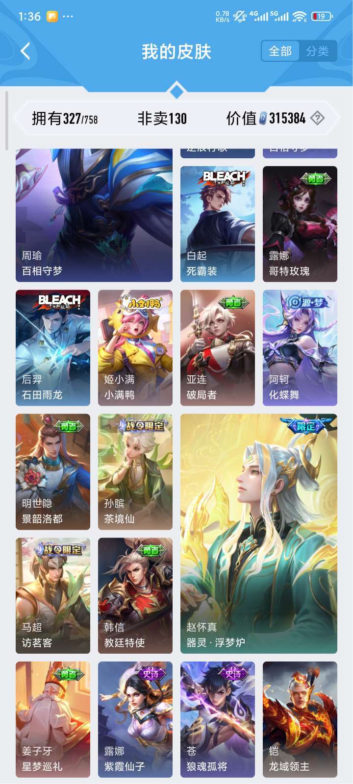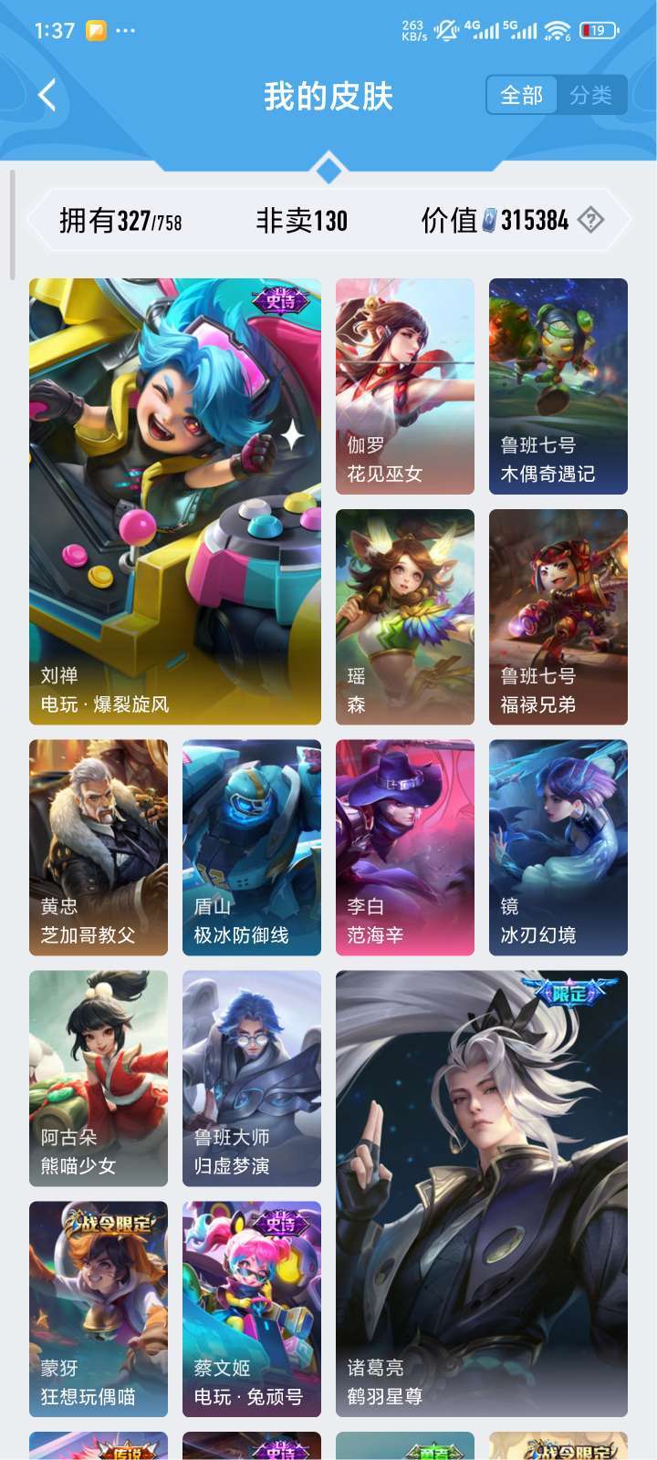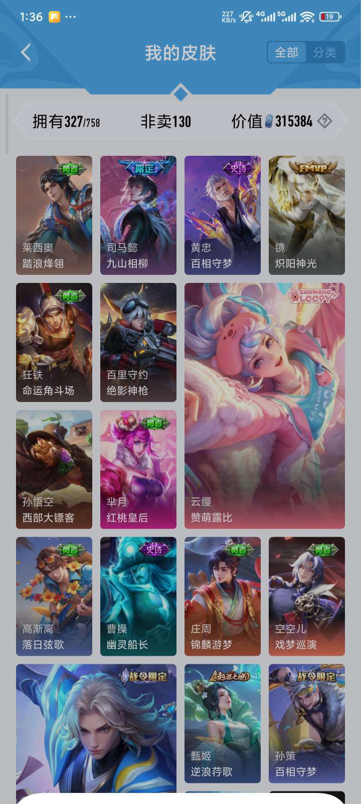 全铭文,327皮肤,贵9质量号