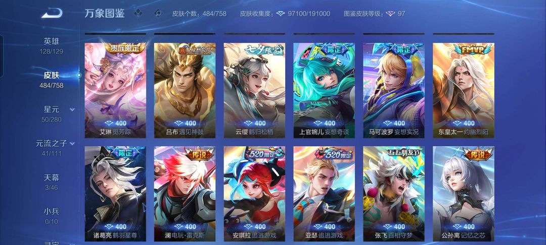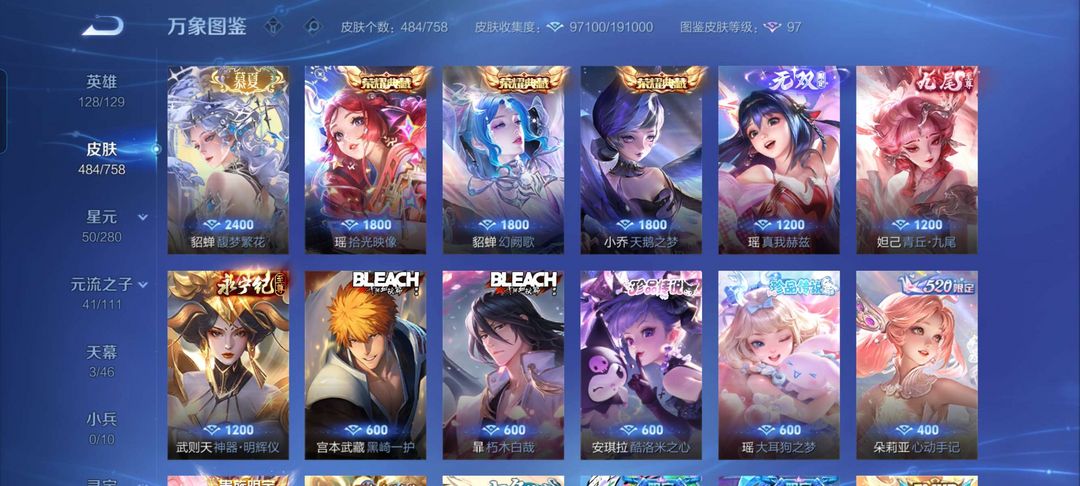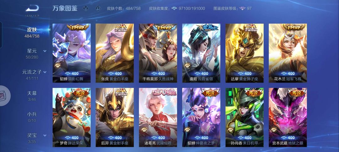 貂蝉有典藏限定和至臻 瑶全皮 花木兰武则天大情 三典藏三无双 有武则天
