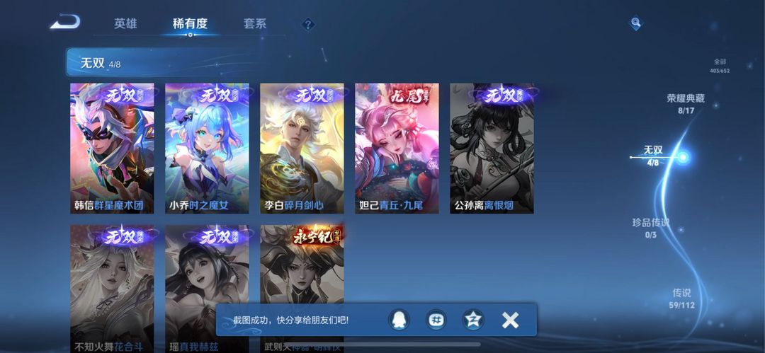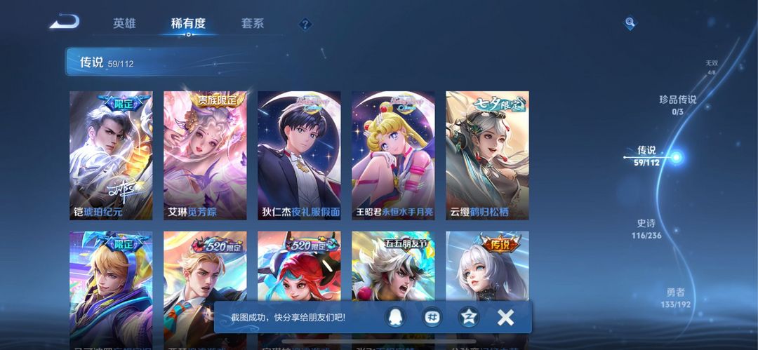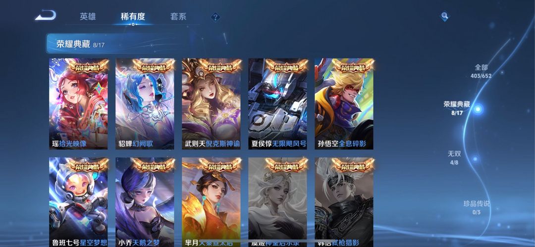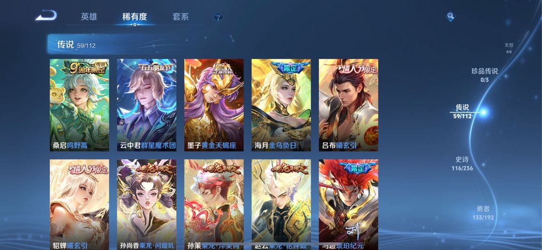 犷告秒唯权V10 9典藏 4无双 59传说 429皮⚡️瑶妹典藏⚡️龙年全套⚡️马超琥珀纪元